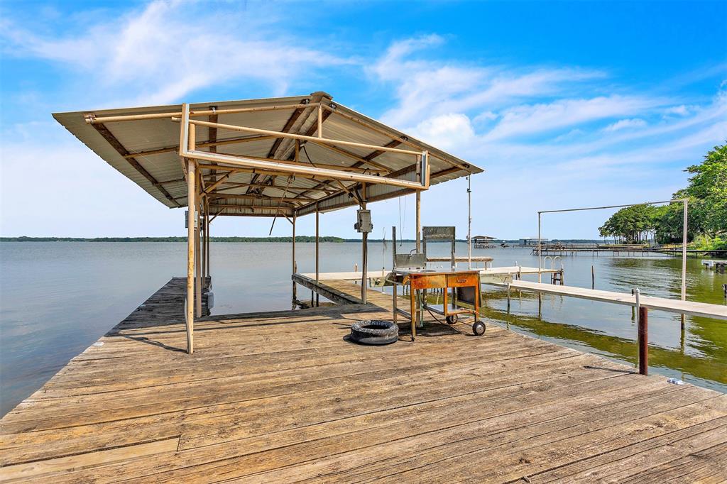 Outdoor Features: Private dock with covered boat parking, Covered deck and fire pit