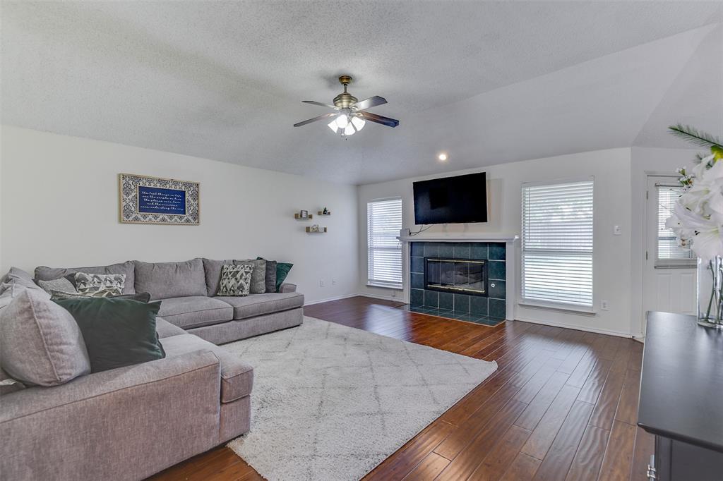 Welcome to this beautiful 3 bedroom, 2 bath home with a 2-car garage, perfectly situated near several major highways and premier shopping destinations. This well maintain home offers both comfort and convenience making it an ideal choice for you. Step inside to find a formal living and dining area with wood style flooring. The generously sized living room provides a warm and inviting atmosphere, featuring a tiled surround gas fireplace. In the heart of the home is spacious kitchen featuring tile flooring, a large island, ample cabinetry, and separate dining area. The main bedroom is huge with double doors opening to the main bath. Features include a garden tub and separate shower. The two secondary bedrooms are nicely sized. The backyard is nicely sized with a covered patio. This home effortlessly combines space, function, and location. Do not miss the opportunity to make it yours!