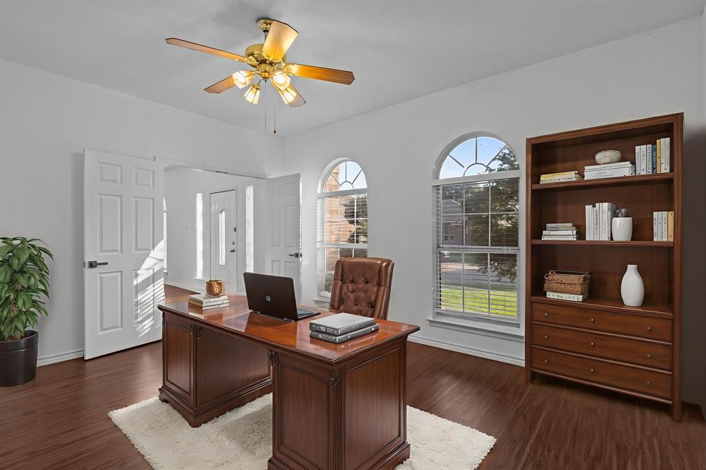 **This house comes with a REDUCED RATE as low as 5.375 (APR 5.667) as of September 10, 2025 through List & Lock™. This is a seller-paid rate-buydown that reduces the buyer’s interest rate and monthly payment. Terms apply, see disclosures for more information.** Freshly painted four-bedroom plus study home nestled minutes from Hwy 66 and Lake Ray Hubbard! This house comes with huge bedrooms with NEW CARPETS! Luxury Vinyl Plank throughout the downstairs. Formal living room with double door can also be used as a study or office, the formal dining room is perfect for parties and huge gatherings. Large kitchen with abundant cabinet spaces, island, and expansive pantry including under-stair storage! Open family room has a charming brick wood burning fireplace for cozy evenings. Upstairs, you will find four spacious bedrooms, including a large primary suite with a walk-in closet. The attached en-suite features double vanities, a garden tub, and an oversized shower. Two recently installed HVAC systems (2023 & 2024). Sprinkler system and foundation drip lines installed in 2022. Enjoy proximity to many retail shops, restaurants, and recreational amenities, including the picturesque Lake Ray Hubbard. No HOA fees!