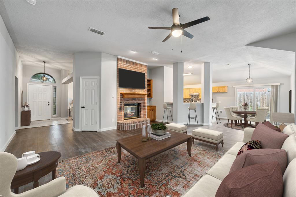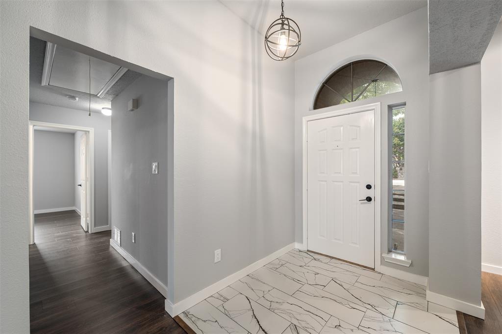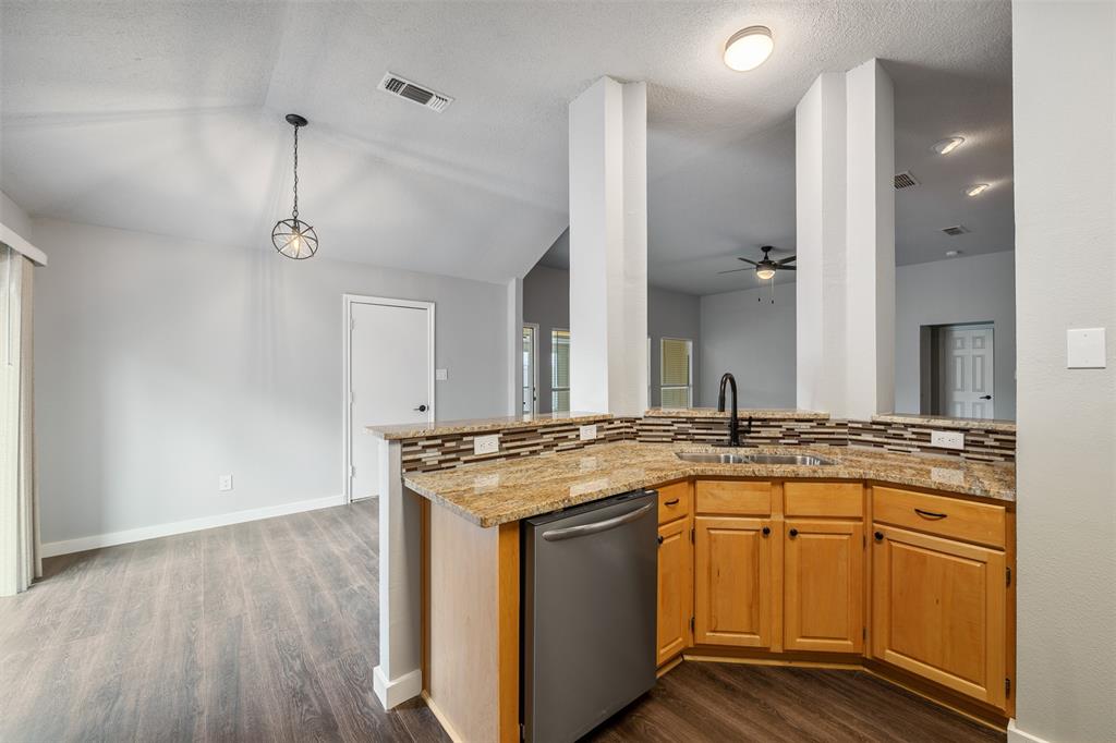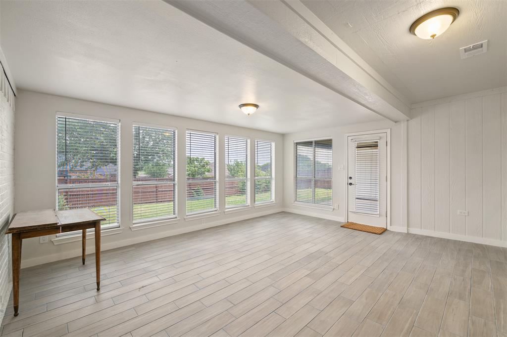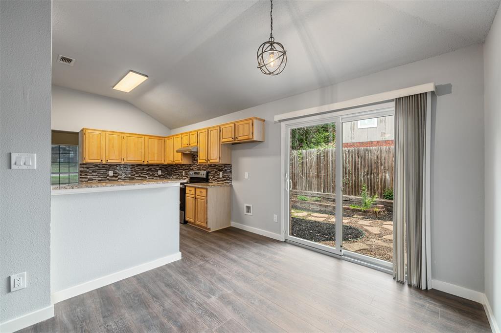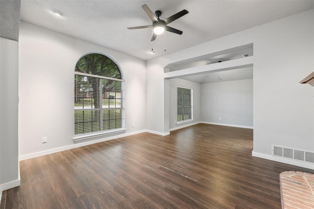 Spacious home with 4 bedrooms, 2 full baths, 2 living areas, 2 dining areas, and recently updated! No HOA!!! The primary bedroom and ensuite bath are separate from the other 3 bedrooms which gives the owners privacy. 2 built-in shelves; 1 in the family room, 1 in the primary bedrm. The fireplace is open to both living room and family room. Granite counter tops in kitchen and all bathrooms, with decorative tile. New appliances, flooring, fresh paint, and light fixtures throughout the home. Solar screens and new 2 inch blinds are on all windows as well. The kitchen is plumbed for gas and the fireplace has a gas starter. The garage is accessed through a back alley. An enclosed garden room with central HVAC and covered porch for outdoor entertaining. Newer 30 year shingle roof and a fire hydrant at the street to help with your insurance. Just minutes away from Interstate 30 and Loop 820 for easy commuting; the home is also close to Blue Haze Elementary and Tannahill Fine Arts Schools.