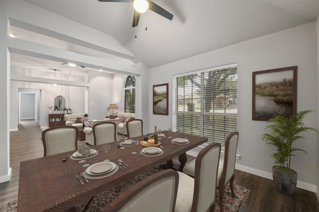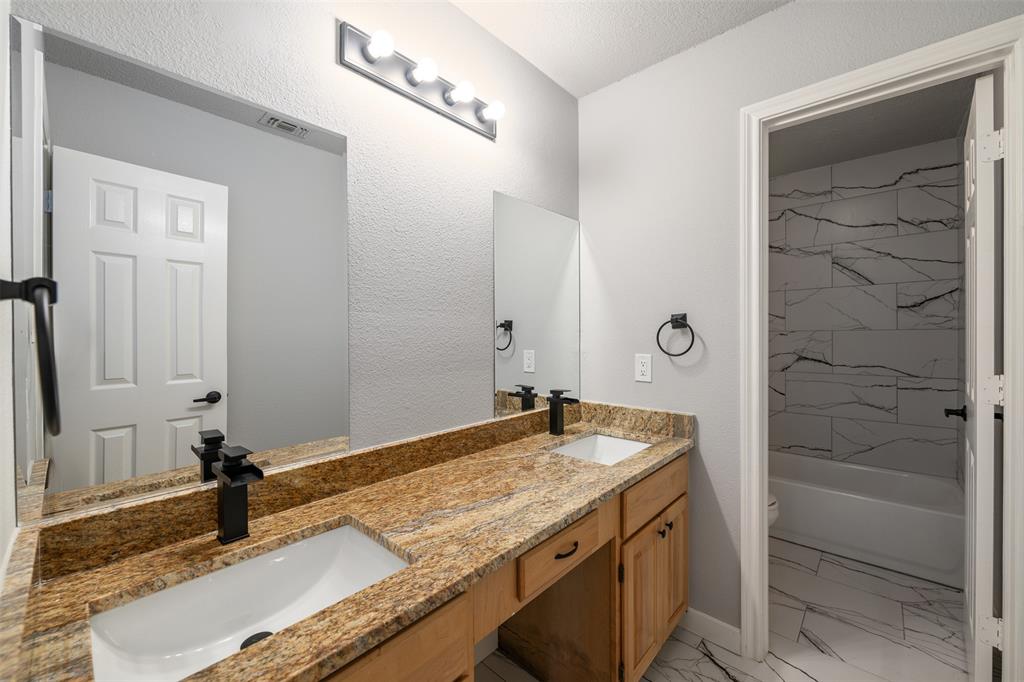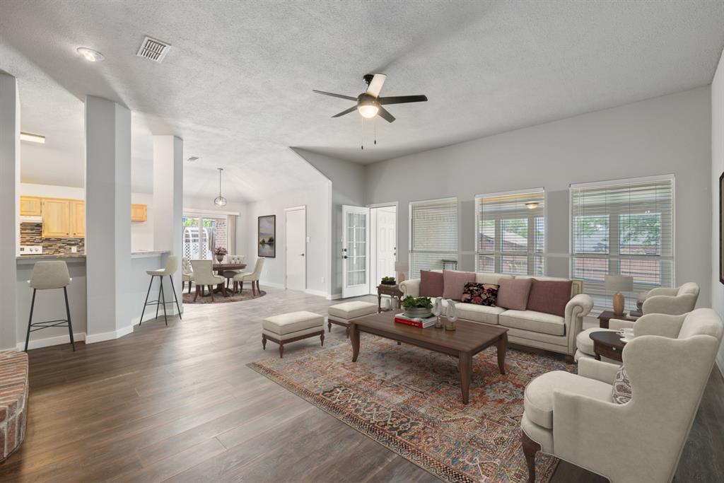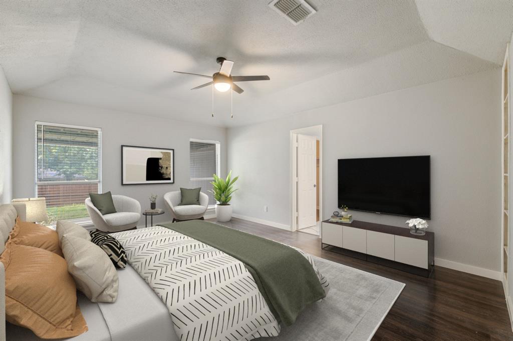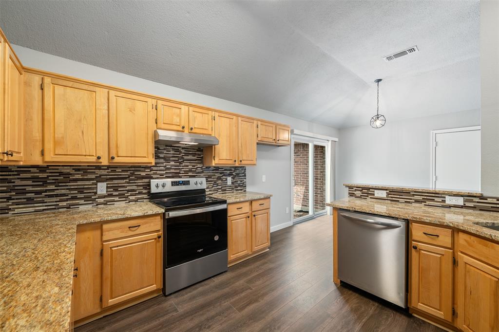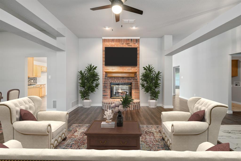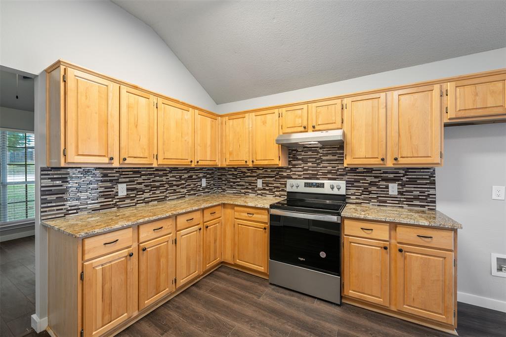 Spacious home with 4 bedrooms, 2 full baths, 2 living areas, 2 dining areas, and recently updated! No HOA!!! The primary bedroom and ensuite bath are separate from the other 3 bedrooms which gives the owners privacy. 2 built-in shelves; 1 in the family room, 1 in the primary bedrm. The fireplace is open to both living room and family room. Granite counter tops in kitchen and all bathrooms, with decorative tile. New appliances, flooring, fresh paint, and light fixtures throughout the home. Solar screens and new 2 inch blinds are on all windows as well. The kitchen is plumbed for gas and the fireplace has a gas starter. The garage is accessed through a back alley. An enclosed garden room with central HVAC and covered porch for outdoor entertaining. Newer 30 year shingle roof and a fire hydrant at the street to help with your insurance. Just minutes away from Interstate 30 and Loop 820 for easy commuting; the home is also close to Blue Haze Elementary and Tannahill Fine Arts Schools.