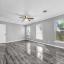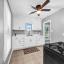 The kitchen and bathrooms shine with brand-new cabinetry, quartz countertops, modern sinks, toilets, and stylish fixtures. Premium flooring runs throughout the home, and new ceiling fans and recessed lighting enhance its bright, airy feel.