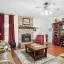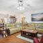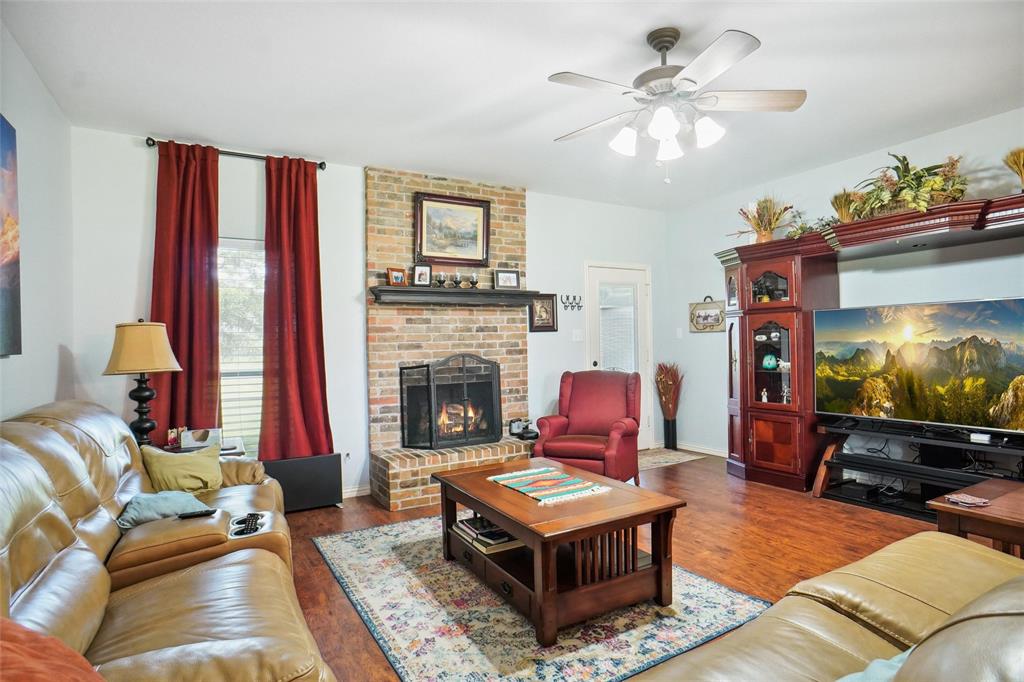 A propane fireplace (propane tank not included) adds warmth and charm to the open-concept living room.