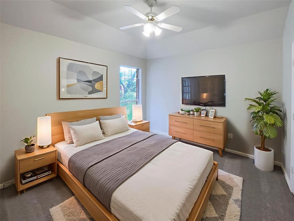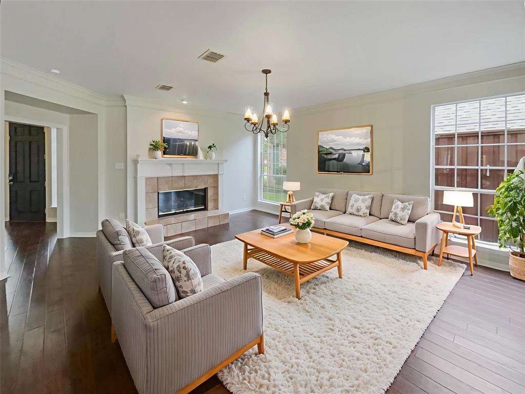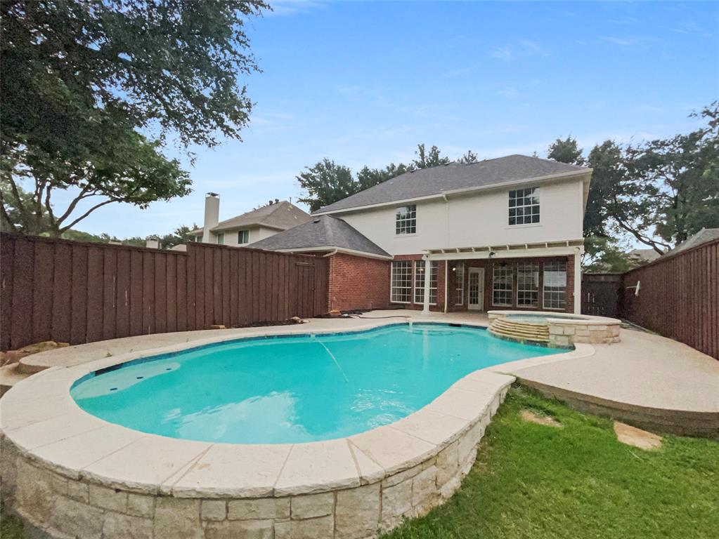 Welcome to your dream home! This property boasts a neutral color paint scheme, fresh interior and exterior paint, and partial flooring replacement, creating a modern and inviting atmosphere. The living room features a cozy fireplace, perfect for relaxing evenings. The kitchen is a chef's dream with a center island, all stainless steel appliances, new granite counters, freshly painted cabinets, new tile backsplash, and a new glass cooktop. The primary bedroom is a true retreat with a walk-in closet and an en-suite bathroom featuring double sinks, a separate tub, and shower. Outside, you'll find a private in-ground pool, a covered patio, and a fenced-in backyard, perfect for entertaining or simply enjoying the outdoors. This home is a must-see!! This home has been virtually staged to illustrate its potential.. 100-Day Home Warranty coverage available at closing