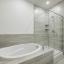 Upstairs, a versatile flex space offers the perfect setting for a home office, reading nook, or secondary lounge. The oversized primary bedroom includes a generously sized walk-in closet and a luxurious en-suite bathroom complete with a soaking tub and separate walk-in shower.