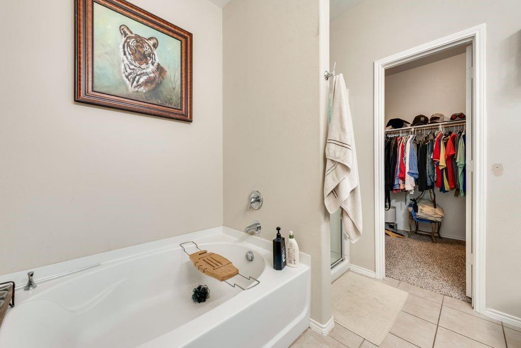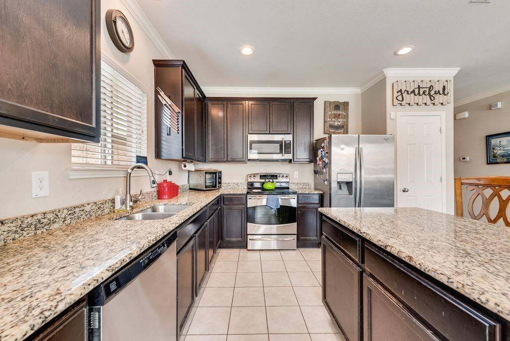 Now is your chance! Welcome to your dream home, where elegance meets functionality. This stunning single-story residence boasts an open-concept layout that exudes warmth and sophistication. The heart of the home is the spacious kitchen, featuring luxurious granite countertops, stainless steel appliances, and rich dark wood cabinetry, perfect for inspiring your culinary creativity. The large living and dining area is flooded with natural light, providing an inviting space to relax or entertain. Step into the serene master suite, complete with a sleek ceiling fan and large windows, offering an ideal retreat. The en-suite bathroom is a private oasis with a modern glass-enclosed shower and a separate soaking tub, leading to a roomy walk-in closet for all your storage needs. Enjoy the convenience of a dedicated laundry room, equipped with high-quality appliances, ample counter space, and additional cabinetry for organization. Outside, the expansive backyard is a blank canvas for your outdoor dreams, whether it's creating a lush garden oasis or setting up for al fresco dining. This home is an ideal blend of comfort and style, providing a perfect sanctuary for modern living. Don’t miss the opportunity to own this captivating property that not only checks all the boxes but also offers an exceptional lifestyle.