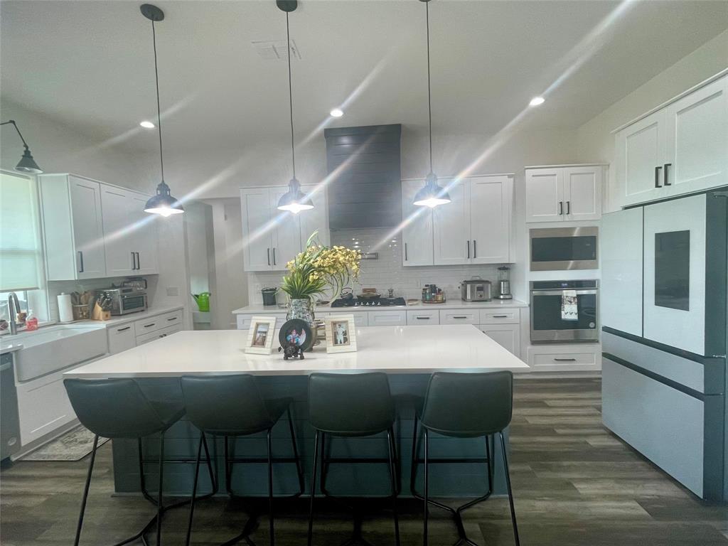 This 4-bed 2.5 bath modern farmhouse is a real showstopper. Board and batten siding with natural stone skirting on a corner has great curb appeal. 10 foot ceiling throughout, great room with statement Fireplace and gas logs, mounted flat screen tv above that comes with the home. Chef's kitchen features a walk-in pantry, Custom cabinets, large prep island with seating for at least four, Pot Filler above 6 burner gas cooktop, electric wall oven and microwave. Master bedroom is situated on the back side of the home, away from the other bedroom double walk-in closets, bathroom with a large Shower and a free-standing jetted tub. The secondary bedrooms are located on the opposite side of the home with a separate bathroom. All bedrooms have ceiling fans and custom window shades. Oversized covered back patio with stone fireplace is perfect for year round entertaining. Backyard is fully fenced and sodded. Over half an acre in the acclaimed Glen Rose school district and community.