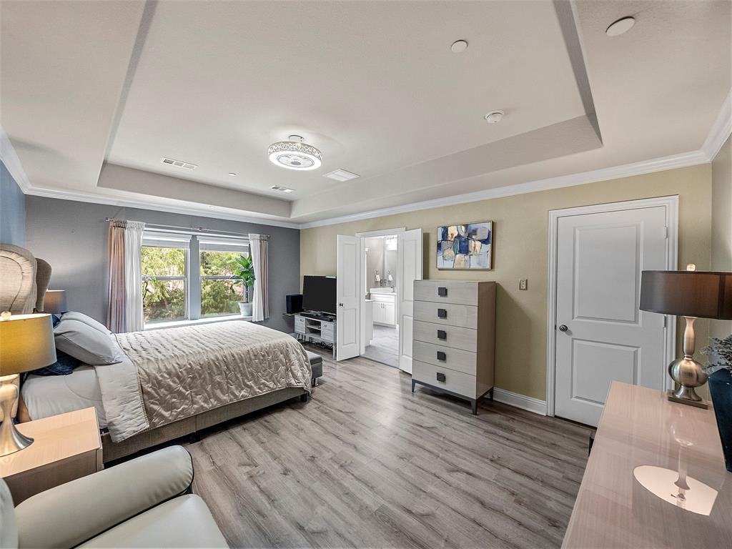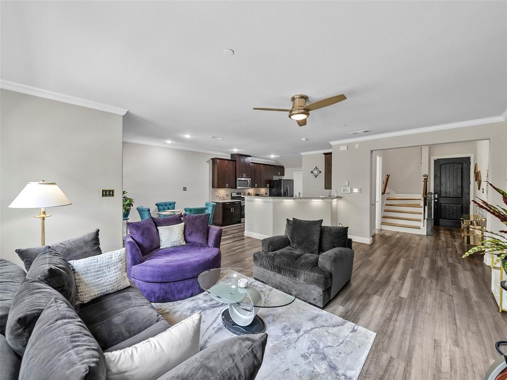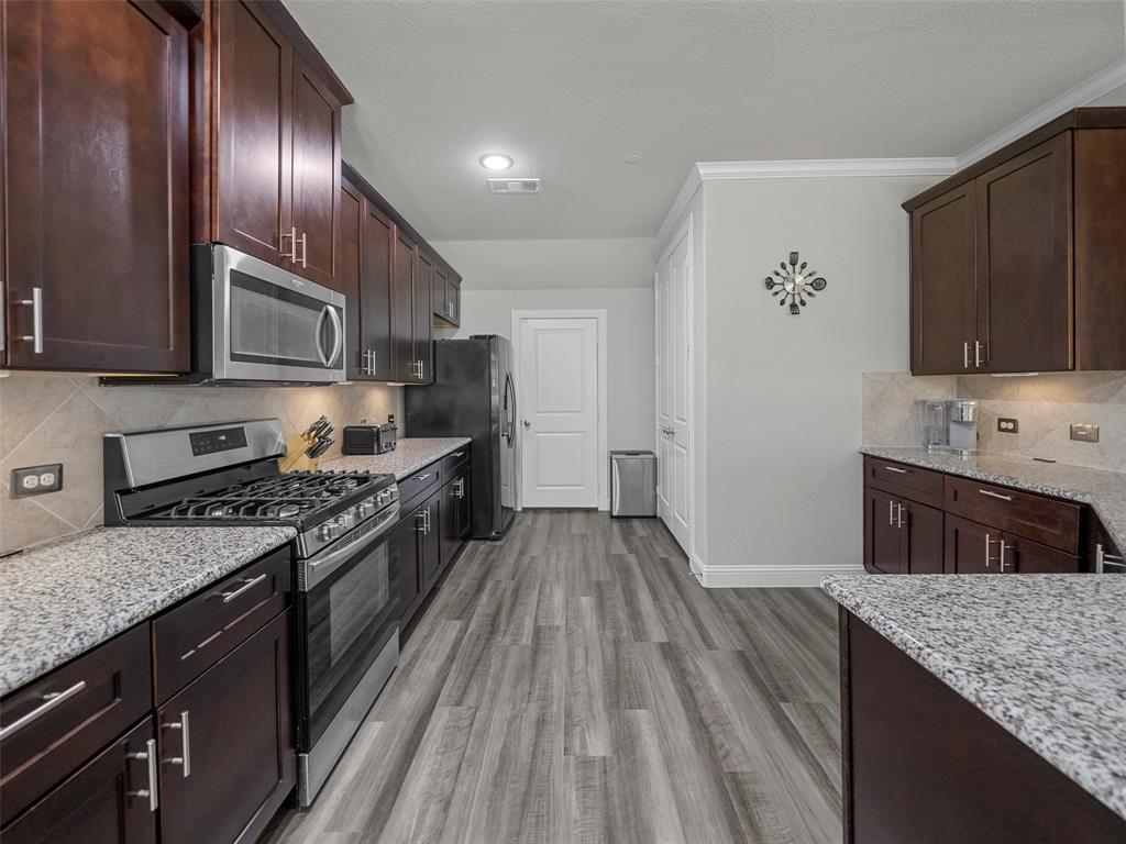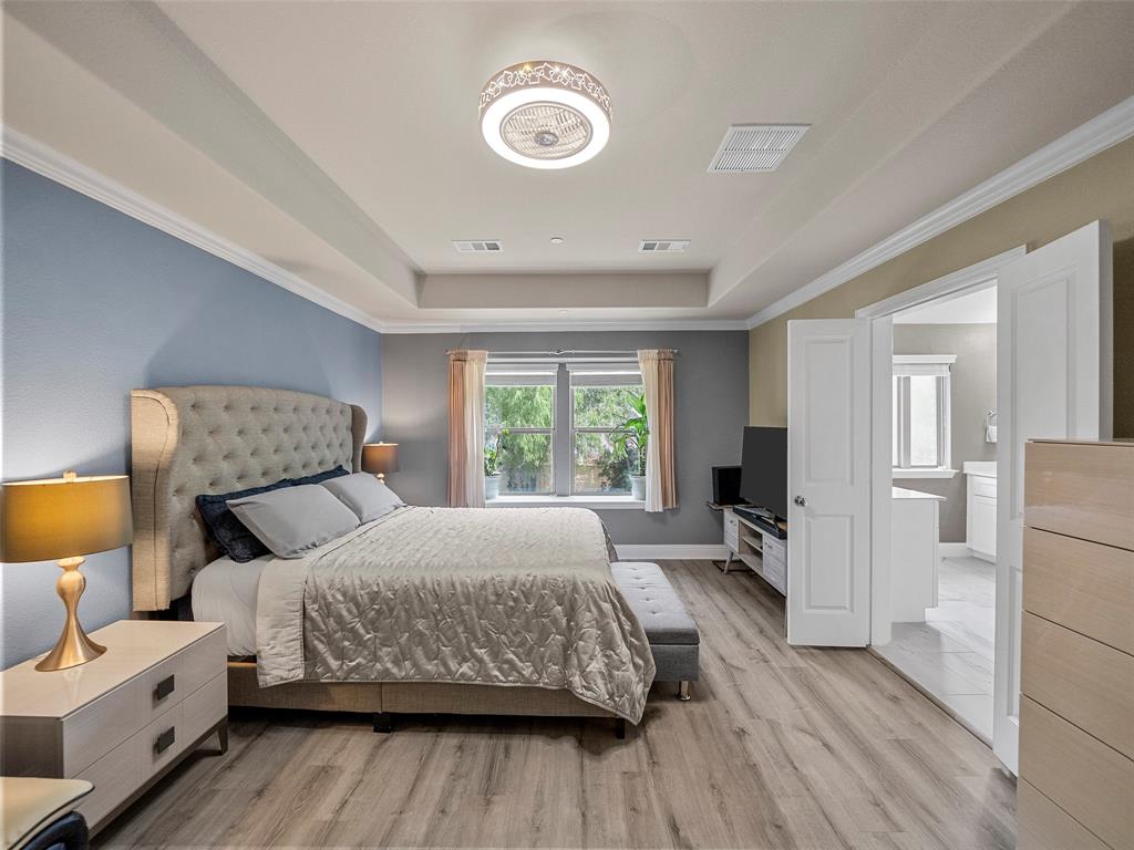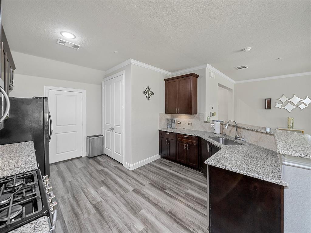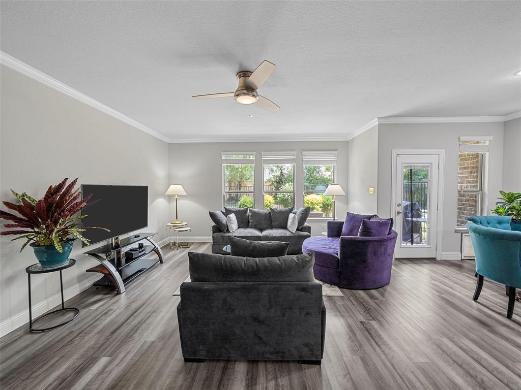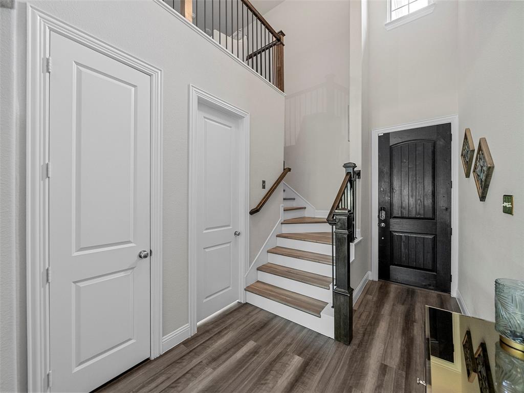Conveniently located Townhome in the boutique Parkview Lane community in Allen. BEAUTIFUL easy-care backyard with flagstone patio with turf area - no grass mowing! - with views of the greenspace that is HOA maintained. Cute curb appeal including front patio sitting area, covered porch, and cedar garage door add so much character! Entry way with soaring ceilings says 'Welcome Home'! Open concept floor plan is perfect for entertaining. Easy-care luxury vinyl plank flooring throughout majority of the home including the stairs. Large living room with with expansive windows showcasing the lush outdoor greenspace. Kitchen with granite counters, soft-close drawers, gas range, large pantry and dining area. LARGE 18x12 private primary suite with window seat & continued views of the greenspace. Spa-like ensuite primary bathroom with dual vanities, oversized walk-in shower, and big walk-in closet. Loft space with floor plugs makes for a great second living area or flex space in this home. Split floor plan offers additional privacy from primary suite. Half bathroom downstairs is perfect for guests. Attached 2-car garage with storage closet, and additional hanging racks - so much storage! You do not want to miss out on this amazing opportunity in Allen ISD! HOA includes front yard maintenance & blanket insurance - additional benefits to the easy-care lifestyle of townhome living! This community is adjacent to the Cottonwood Creek South Walking Trail - one of the many over 83 miles of trails in Allen TX!