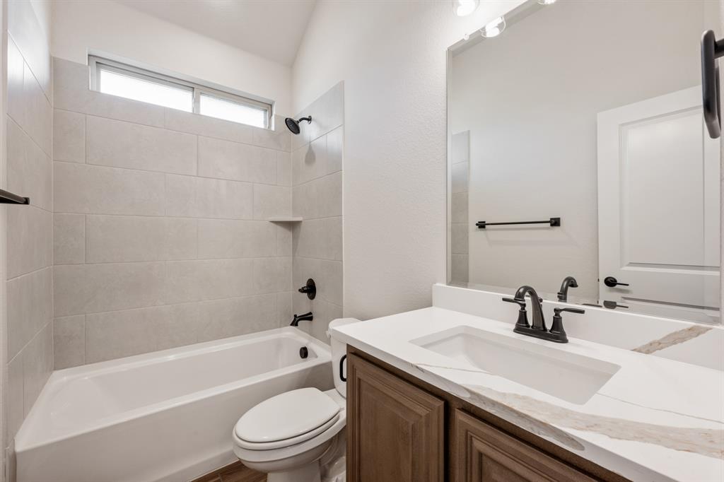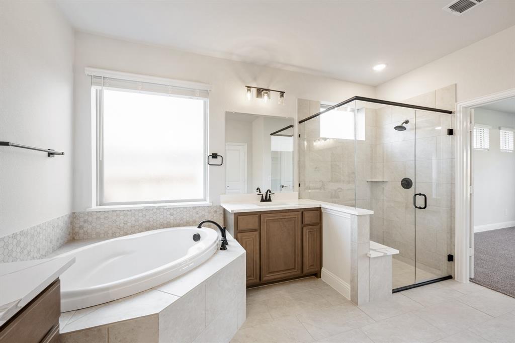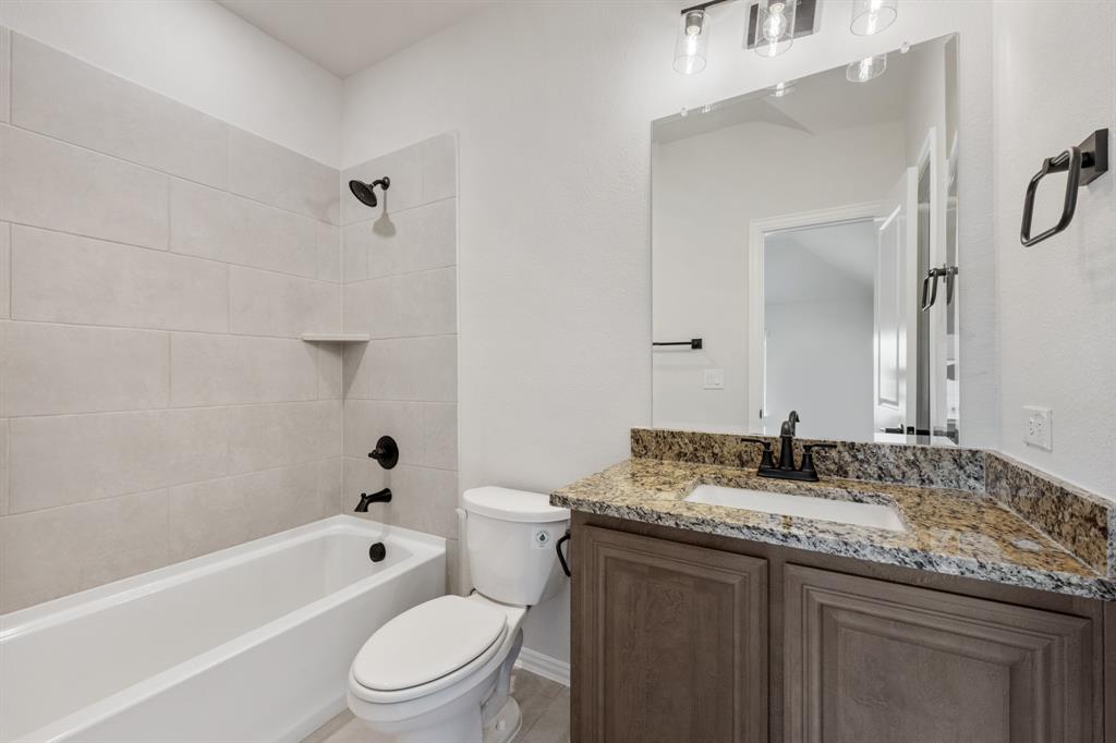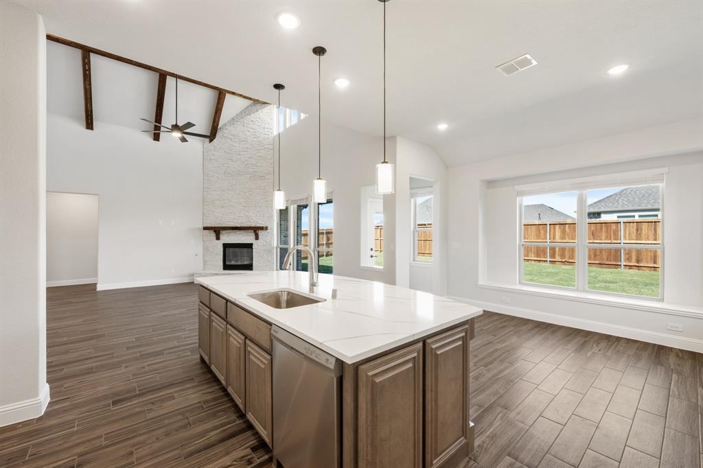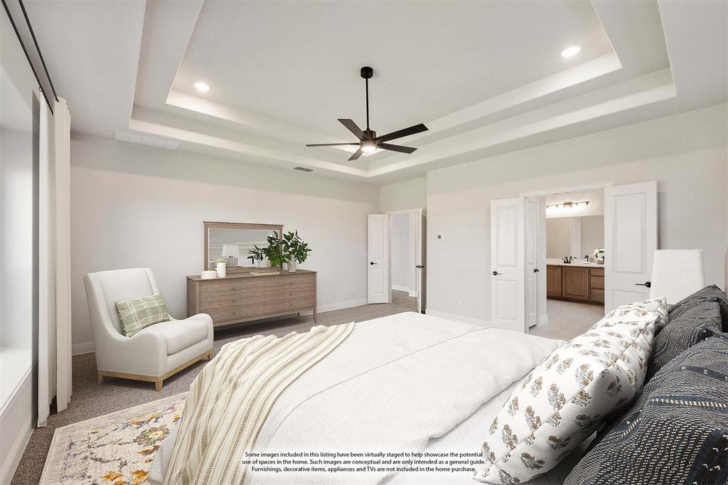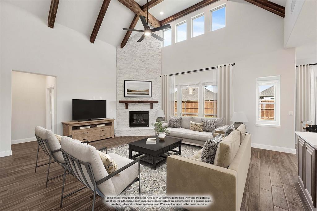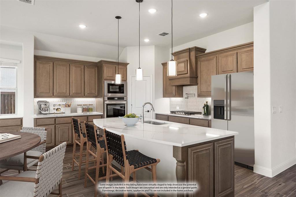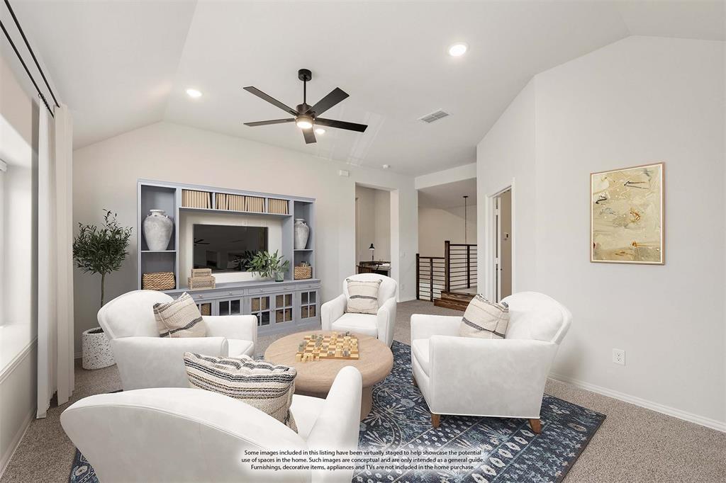 BRAND NEW & NEVER LIVED IN! READY to Move-In NOW! Introducing Bloomfield's Primrose FE VI floor plan, a stunning two-story home with a brick and stone facade and charming cedar garage doors that enhance its elegant curb appeal. This thoughtfully designed layout offers 5 bedrooms and 4.5 baths, with bedrooms thoughtfully positioned on both levels for added flexibility. Step through the custom 8' Front Door into a grand Rotunda Entry, where full oak stairs and stained beams in the Family Room immediately elevate the architectural presence. The Formal Dining area and private Study are perfect for entertaining or working from home, while the spacious Family Room impresses with soaring vaulted ceilings and a dramatic stacked Stone-to-Ceiling Fireplace crowned by a cedar mantel. The Deluxe Kitchen caters to every culinary need, offering Quartz and Granite counters, stainless steel built-in appliances, pot and pan drawers, a custom wood vent hood, and ample cabinetry, all complemented by durable Wood-look Tile flooring that continues throughout the open common areas. Upstairs, a Game Room and Media Room offer flexible living space, while the mud room adds daily convenience with thoughtful storage solutions. A 3-car garage provides generous parking and storage, and outside, a gas stub on the patio is perfect for grilling on weekends. Located on an interior lot in the vibrant Stone River Glen community, residents also enjoy access to unique amenities like a volleyball court and golf club—don’t miss your chance to call this exceptional home yours!