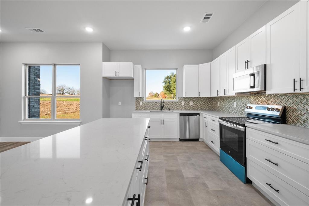 Discover this stunning new lake house featuring 4 spacious bedrooms and 2 luxurious bathrooms, designed for comfort and style. The home boasts granite quartz countertops throughout, adding elegance and durability to every corner. Wake up to breathtaking lake views from the large windows and enjoy the serene ambiance of waterside living.
