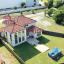 Custom Built- Experience timeless Mediterranean elegance in this beautiful custom-designed 5-bedroom, 4-bath home, nestled on one of the largest lots in the community. From the moment you enter through the grand cast iron front door, you're welcomed by soaring 20-foot ceilings, abundant natural light, and graceful architectural arches that define the open floor plan. The family room features a 20-foot-tall ceiling, windows, and custom decorative brickwork, while a striking curved staircase and solid hardwood flooring add to the home’s sophisticated charm. Hardwood floors extend throughout the main level, excluding the kitchen and guest suite. The gourmet kitchen is a chef’s dream, offering a 48” commercial-grade range and hood, custom cabinetry, a large stainless steel farmhouse sink, and 2cm granite countertops — also featured in all four bathrooms. Two bedrooms, including a spacious primary suite and a guest bedroom, are conveniently located on the main floor. Additional highlights include 8-foot doors, a tankless instant water heater, extended front parking, and a stunning six-color Spanish brick tile roof crowned with two decorative domes.