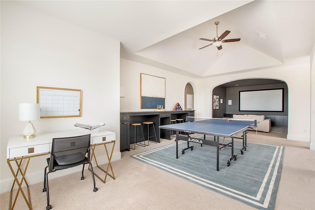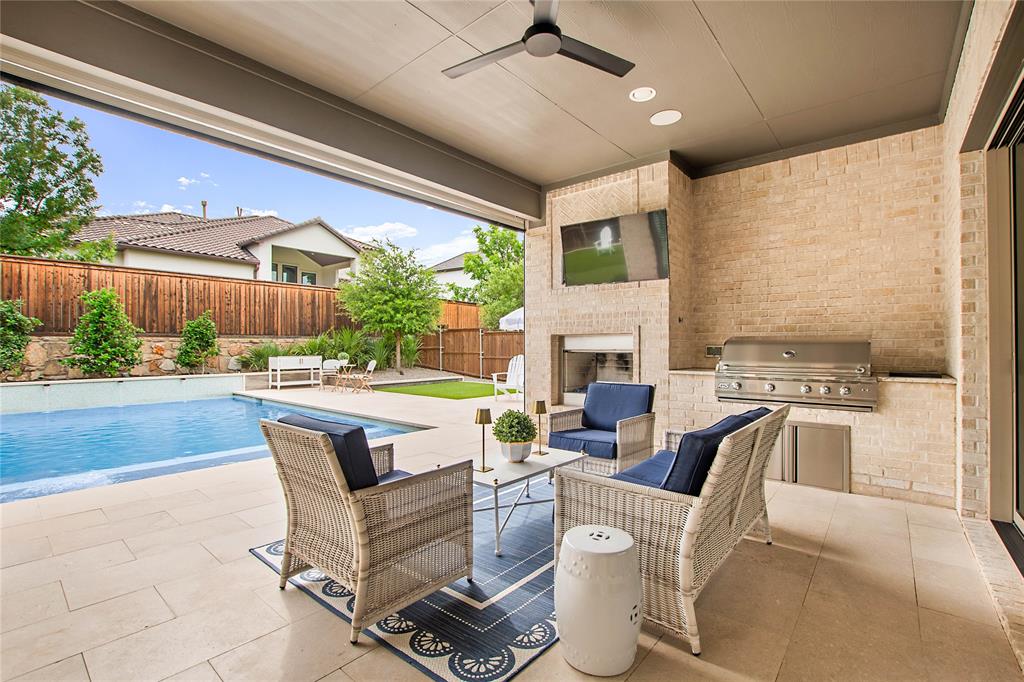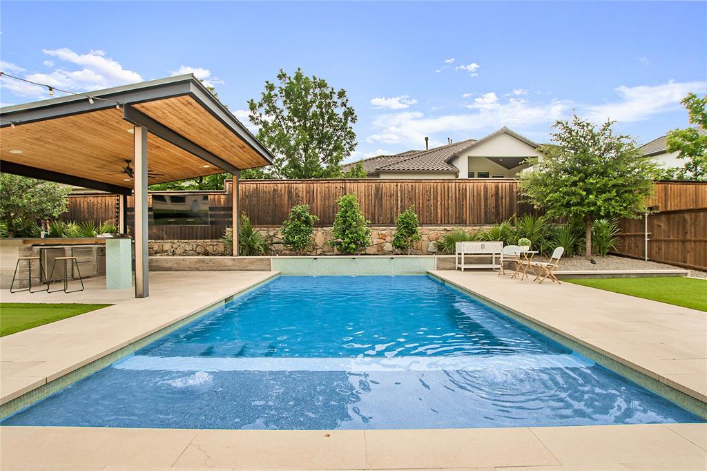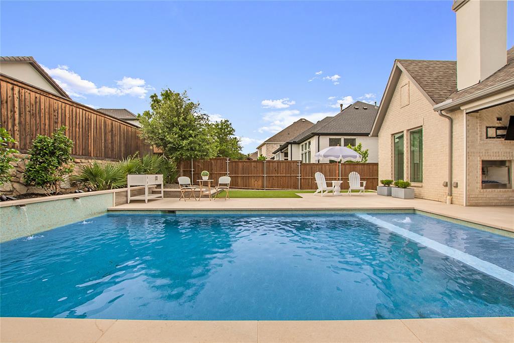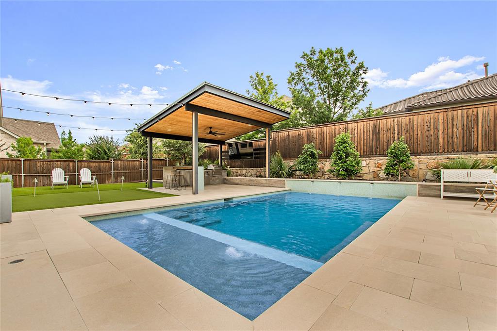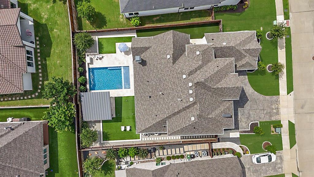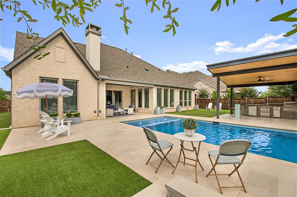 Are you looking for your own personal paradise? Welcome to this stunning home tucked into the heart of the prestigious Star Trail community. From the moment you arrive, this home effortlessly blends refined elegance with everyday comfort. Inside, you’ll be greeted by freshly painted walls & cabinets that radiate warmth & light, harmonizing beautifully with rich, newly extended hardwood floors in both the primary & guest bedroom as well as the rest of the downstairs. Custom cabinetry adds thoughtful beauty and function throughout the home, while recently installed whole-home surge and lighting protection offers peace of mind. The gourmet kitchen is designed for hosting and entertaining. Upstairs, you’ll find a large game room with a separate media room both featuring built-ins as well as two spacious bedrooms. The garages boast durable epoxy flooring and extra storage. Next, step outside into your private backyard retreat which features a resort style pool surrounded by luxury travertine decking & turf, a large cabana and it’s very own putting green. The fully equipped cabana is built for entertaining and unwinding in style, complete with a built-in smoker, refrigerator, TV and bar tap. Additionally, the patio features a powered roll down shade, a large grill, an added fire place and a TV. This backyard oasis is the ideal setting for weekend cookouts and unforgettable gatherings under the stars. Beyond your personal sanctuary, the Star Trail community offers a lifestyle like no other. Enjoy access to an onsite elementary school, 6,000-square-foot clubhouse with party pavilion, resort-style pools, lighted tennis & pickleball courts, a splash pad and playground, serene lakes, and scenic trails perfect for morning jogs and evening strolls. Here, neighbors become friends, and the community feels like home. Located within the award-winning Prosper ISD and close to everything you need, 740 Hallmark isn’t just a dream home. It’s your next chapter, waiting to be written.
