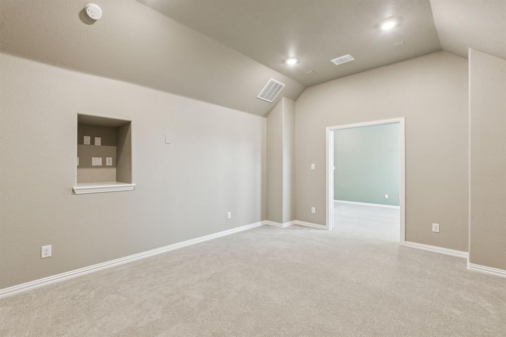 Welcome to the exquisite, newly constructed home at 604 Quaint Pond Lane in Argyle, Texas. This modern masterpiece, never occupied, offers 3,533 square feet of sophisticated living space and impeccable design. Featuring five spacious bedrooms and four luxurious bathrooms, this residence redefines comfort and style. Enter into a world where an open floor plan seamlessly connects the living areas, highlighted by a gourmet kitchen complete with a double oven and gas range. Adjoining the kitchen are two elegant dining spaces, perfect for hosting gatherings. The home features a private study, ideal for working remotely, as well as a game room and a media room upstairs, ensuring endless entertainment possibilities. Indulge in the warmth of carpet and ceramic floors, complemented by stunning hardwood in key areas. Relax by the working fireplace, a centerpiece of the home's inviting ambiance. An added utility room offers space for a refrigerator, enhancing convenience. Outdoors, enjoy views of the open land at the back, while a charming greenspace graces the side of the home. The garage boasts epoxy floors, adding a touch of durability and style. This property is a perfect blend of modern living and thoughtful design, promising a luxurious lifestyle in a serene setting