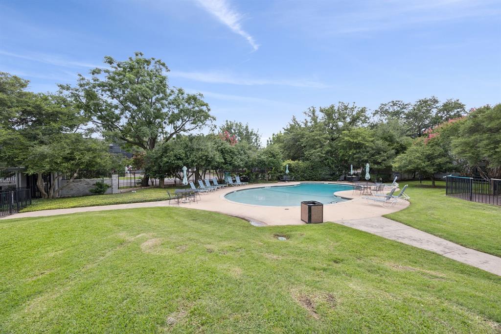 Nestled in a beautifully landscaped, park-like community, you'll love the serene setting with mature trees, ambient evening lighting, and a sparkling swimming pool — ideal for summer lounging and gatherings.