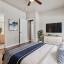 Welcome to this charming two-story Craftsman-style home, perfectly situated in the master-planned community of Providence Village. A welcoming front porch sets the tone as you step inside to discover warm, wood-look flooring that flows throughout the main living areas. The spacious living room seamlessly connects to the kitchen and breakfast nook, making it ideal for everyday living and entertaining. The galley-style kitchen is a chef’s delight, equipped with sleek stainless steel appliances, an LG dual oven, built-in microwave, and a convenient pantry for extra storage. The primary bedroom is thoughtfully separated from the secondary bedrooms and features a walk-in closet and ensuite bath. Two additional bedrooms downstairs share a well-appointed full bathroom. Upstairs, you’ll find two more spacious bedrooms, a full bath, and a versatile 14x6 storage closet or flex space—perfect for a hobby room, home office, or additional storage. Enjoy all the resort-style amenities Providence Village has to offer, including multiple pools, a clubhouse, fitness center, playgrounds, sports courts, fishing lakes, and more. With so much to explore and enjoy, you may never want to leave!
