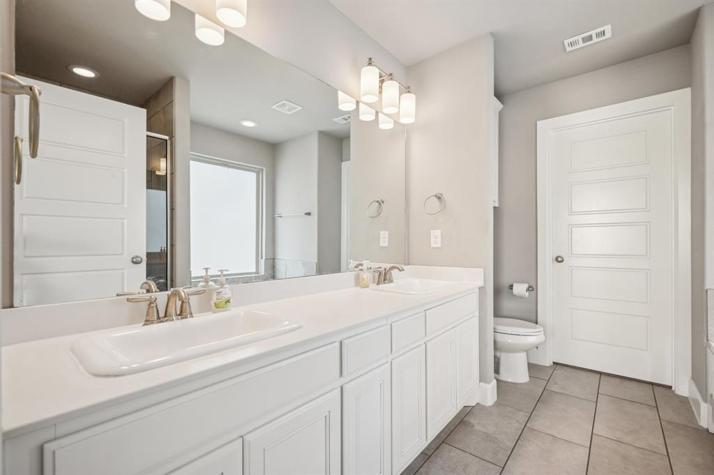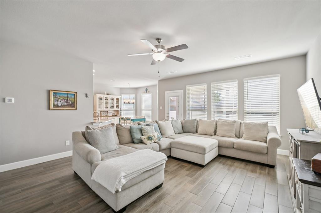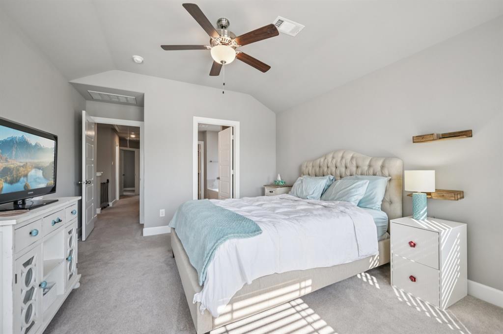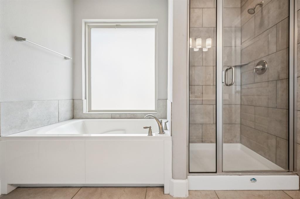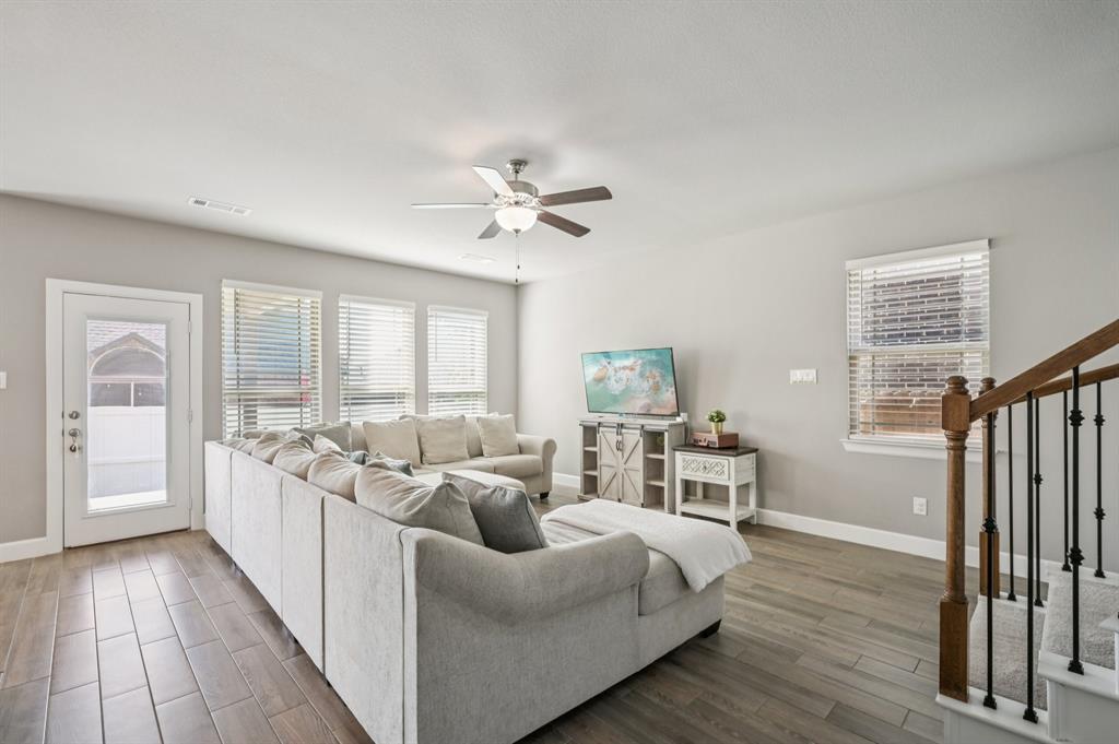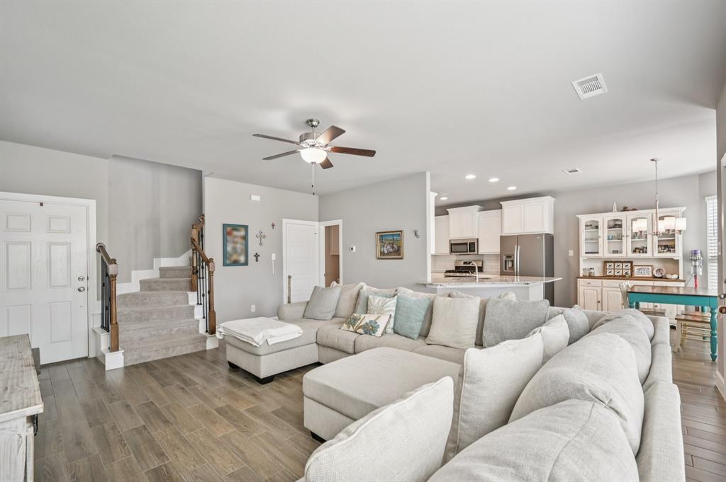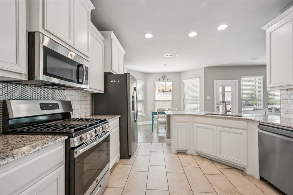 Move-in Ready 4-bedroom, 3.5-bath home with luxury touches! Inviting and spacious, this well-kept and exceptionally clean home offers wonderful natural light, beautiful wood-look tile flooring, and plentiful storage. Kitchen has granite counters, large breakfast bar, a 5-burner gas range, 42-inch cabinets, and a pantry to organize your staples. The kitchen overlooks the back yard, main living room and dining area—creating a comforting and welcoming atmosphere for hosting dinners and get-togethers. Half bath is downstairs for convenience. For privacy all bedrooms and a flexible loft are located upstairs. Giving an additional living area, the loft creates the perfect reading or play space, while a secondary bedroom with its own private bath gives teens, roommates, or guests the privacy to feel right at home. The spacious primary suite offers enough room for a sitting area by the bayed windows. In the ensuite bath you will find a large walk-in closet for wardrobe and storage needs, dual sinks, and a beautiful garden tub plus a separate shower.