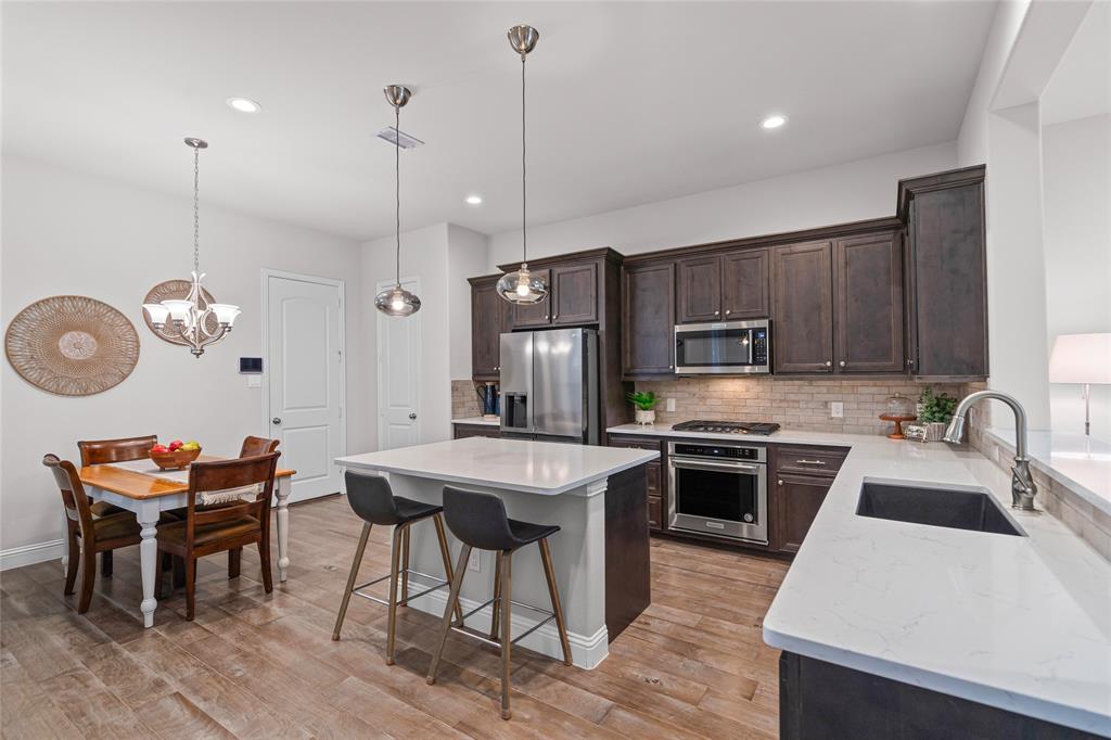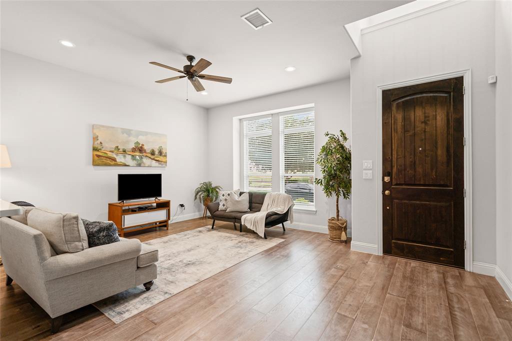 BEAUTIFUL TOWNHOME WITH INCREDIBLE LOCATION OVERLOOKING THE RIVERWALK IN FLOWER MOUND! This amazing townhome has it all and is perfect for low maintenance living! Great floor plan with LARGE open floor plan and HUGE primary owners suite! Impeccably maintained and just like new with fresh interior paint, beautiful quartz counters, and neutral finishes throughout. Tons of storage with large closets, under stairs storage space, kitchen pantry and overhead garage ceiling racks. Enjoy the private patio with plenty of space to enjoy the outdoors. Incredible location in the highly desirable and charming Riverwalk with easy access to restaurants. shopping, and entertainment, and just 15 mins from DFW airport! Enjoy miles of hike and bike trails, community parks, and strolling along the waterfront right outside your front door! HOA fees provide coverage for the roof, exterior of the structure and also maintains yard front and back. This is truly a turn key and go property. Don't miss out on this opportunity to make this your new home!