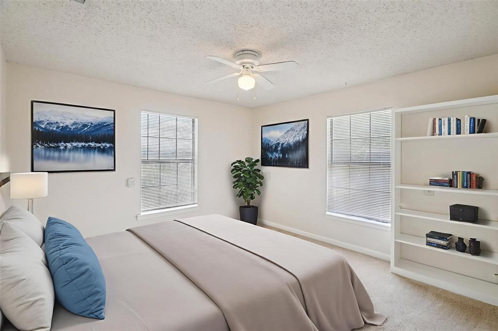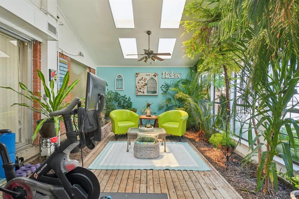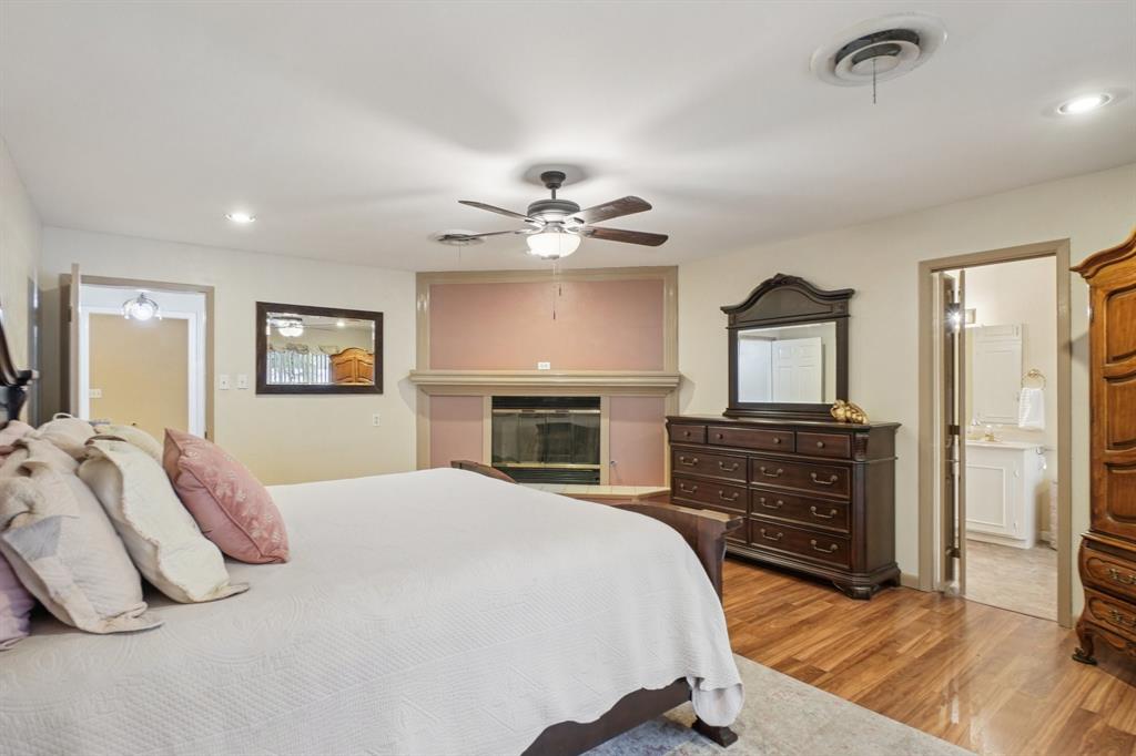 This home offers a spacious layout designed for comfort and flexibility. The main-level primary suite features a cozy fireplace, walk-in closet, and a sun-filled garden room with a calming fountain. You’ll also find an inviting living room that flows into a well-appointed kitchen with custom cabinetry, generous counter space, and an oversized utility room. A second downstairs bedroom is perfect for guests or a home office.