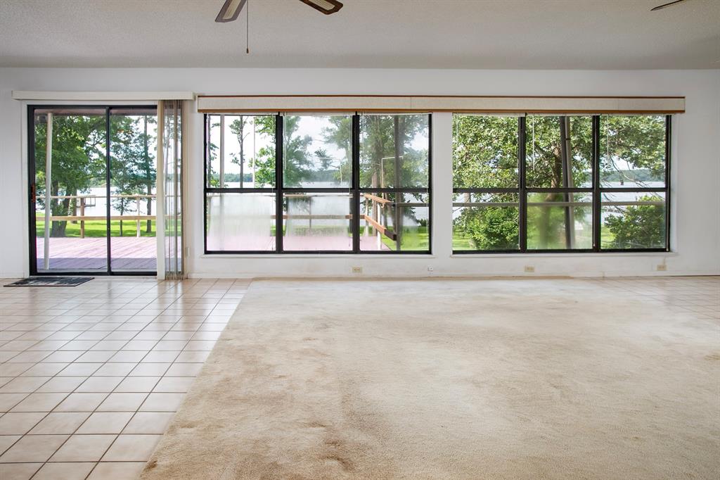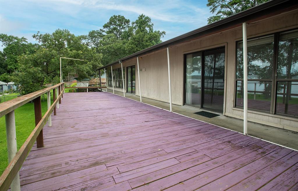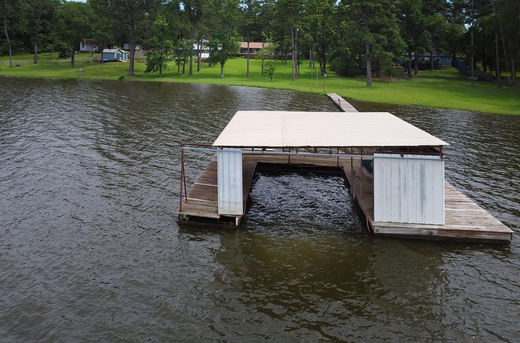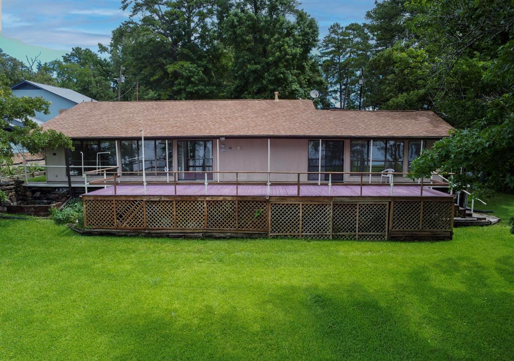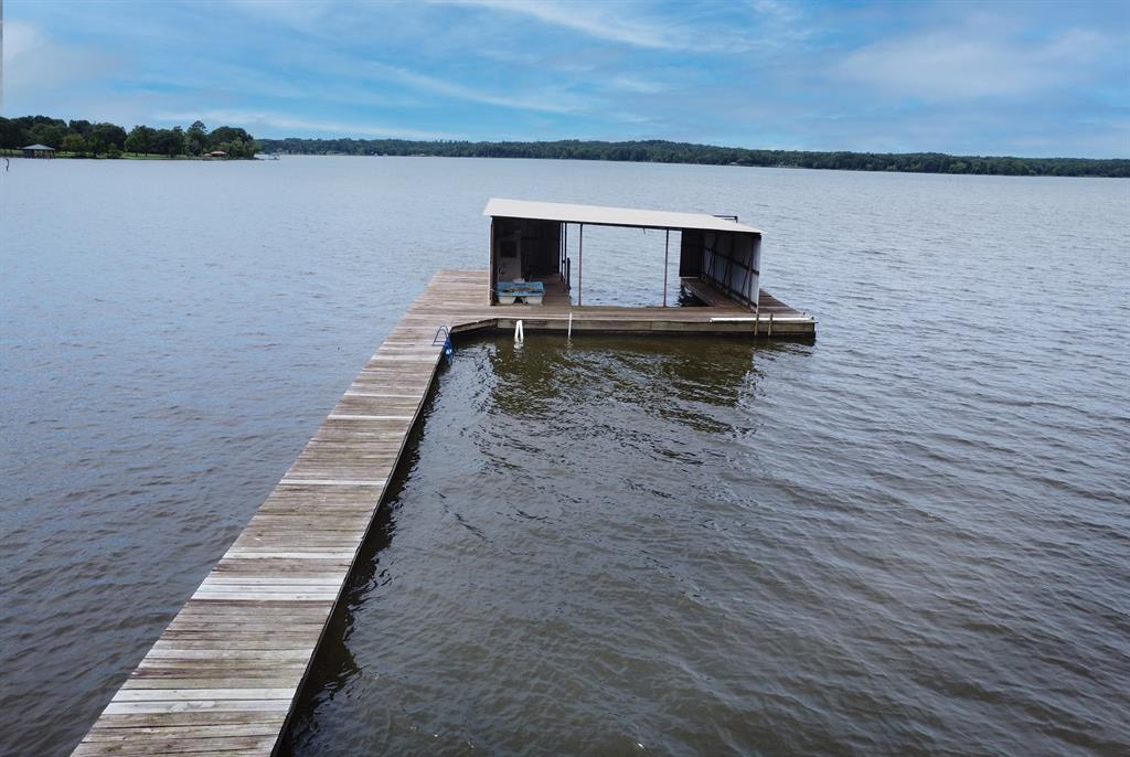 Beautiful Garden entry way into this large waterfront home. Open living style with windows running the length of the house accenting the wonderful lake views. Tile floors throughout the home . Carpet in the bedrooms and in the living room. Home has a half bath for your guests as you enter the home. This home features two bedrooms both with en suite baths. The Master Bedroom which measures 12' by 30' has a wall of windows and a sliding glass door giving access to the wonderful patio deck. Propane Hot Water Heater in the large utility room which features pantry cabinets, a sink and desk .HVAC system replaced in 2024. Roof was replaced in 2023. Plumbing was replaced with Pex. Pylons underneath the boathouse was also replaced in the last two years. Guttering was replaced in 2024. A wonderful large shop is located at the front of the property. This shop has work benches ,electricity and a garage door to store a boat or RV. The pump for the sprinkler system is located on the dock, 220 electricity is available on the dock. The large carport protects entry into the front door. This large home has terrific bones and the mechanical systems have all been updated. Home needs a buyer with vision to make this home their special getaway. Water depth off the dock is surprisingly deep. Large backyard with 120 feet of shoreline. Property is located 6 miles from city of Chandler ,which features shopping , restaurants and medical facilities. Tyler with first class medical , shopping and gardens are a short 20 miles away. Property is waiting for a new owner .