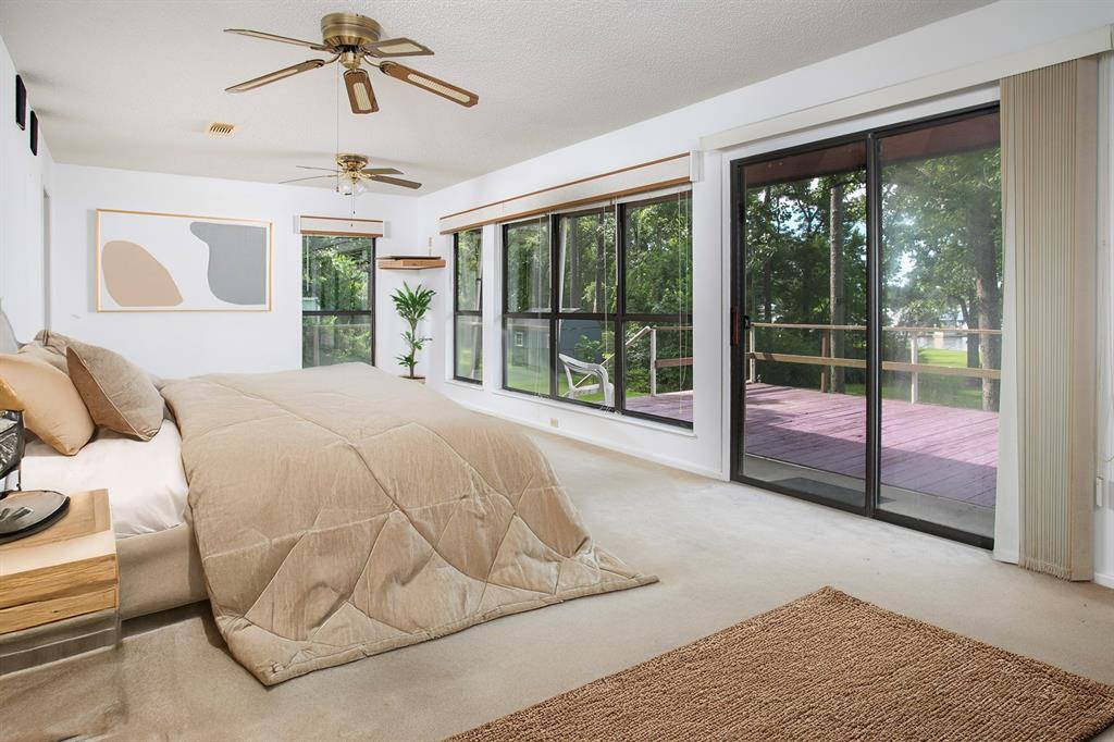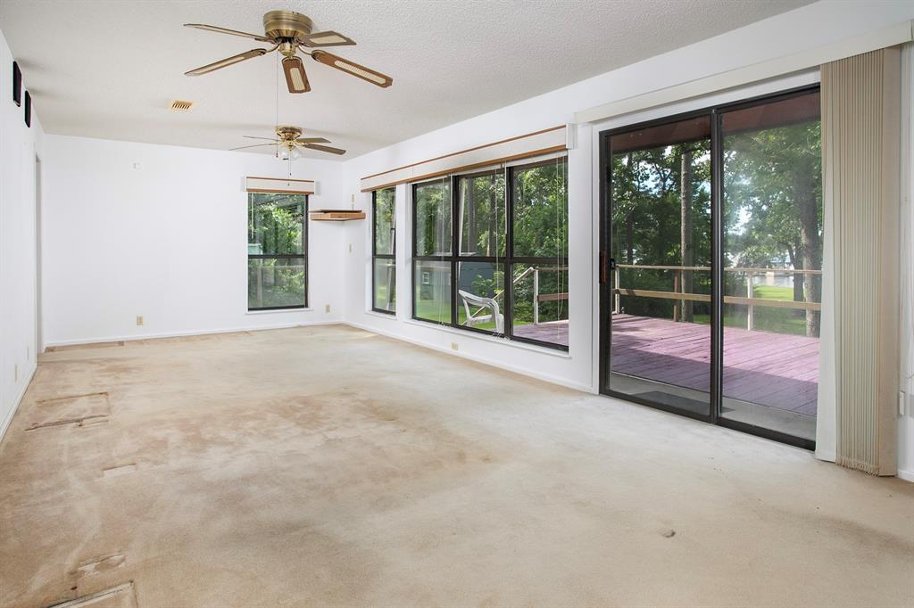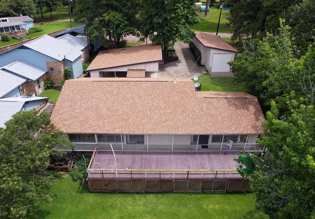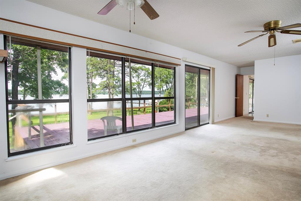 Beautiful Garden entry way into this large waterfront home. Open living style with windows running the length of the house accenting the wonderful lake views. Tile floors throughout the home . Carpet in the bedrooms and in the living room. Home has a half bath for your guests as you enter the home. This home features two bedrooms both with en suite baths. The Master Bedroom which measures 12' by 30' has a wall of windows and a sliding glass door giving access to the wonderful patio deck. Propane Hot Water Heater in the large utility room which features pantry cabinets, a sink and desk .HVAC system replaced in 2024. Roof was replaced in 2023. Plumbing was replaced with Pex. Pylons underneath the boathouse was also replaced in the last two years. Guttering was replaced in 2024. A wonderful large shop is located at the front of the property. This shop has work benches ,electricity and a garage door to store a boat or RV. The pump for the sprinkler system is located on the dock, 220 electricity is available on the dock. The large carport protects entry into the front door. This large home has terrific bones and the mechanical systems have all been updated. Home needs a buyer with vision to make this home their special getaway. Water depth off the dock is surprisingly deep. Large backyard with 120 feet of shoreline. Property is located 6 miles from city of Chandler ,which features shopping , restaurants and medical facilities. Tyler with first class medical , shopping and gardens are a short 20 miles away. Property is waiting for a new owner .