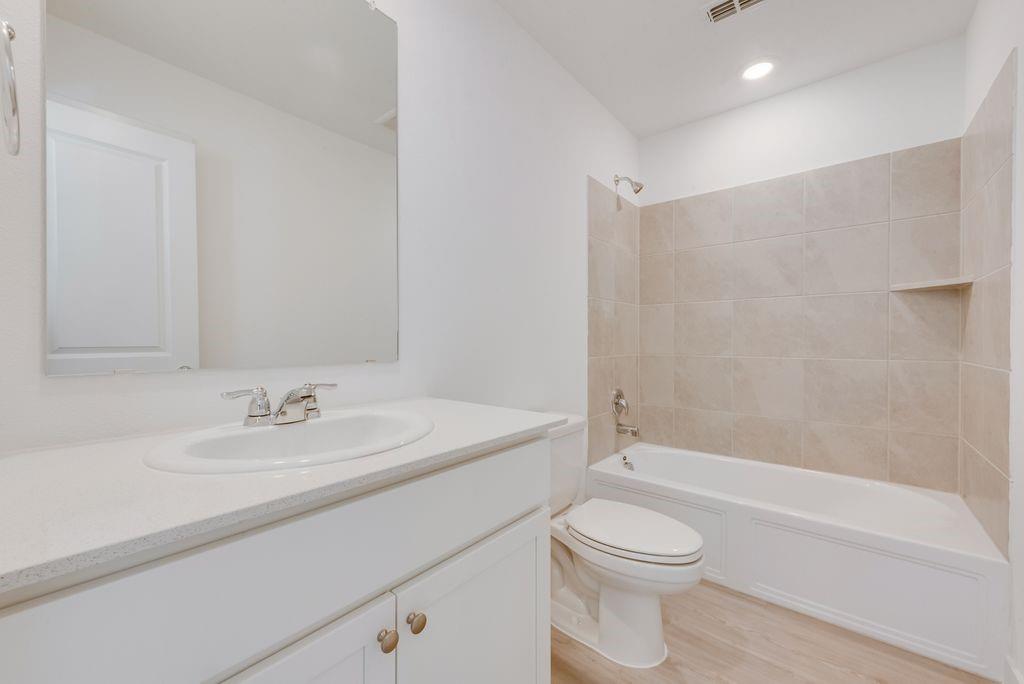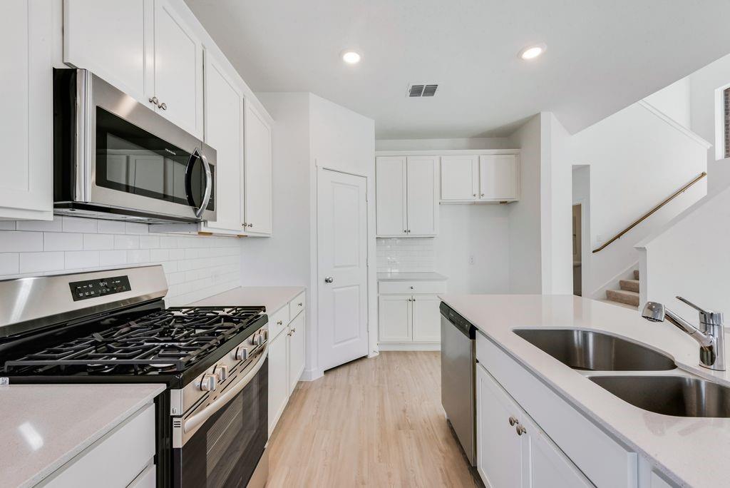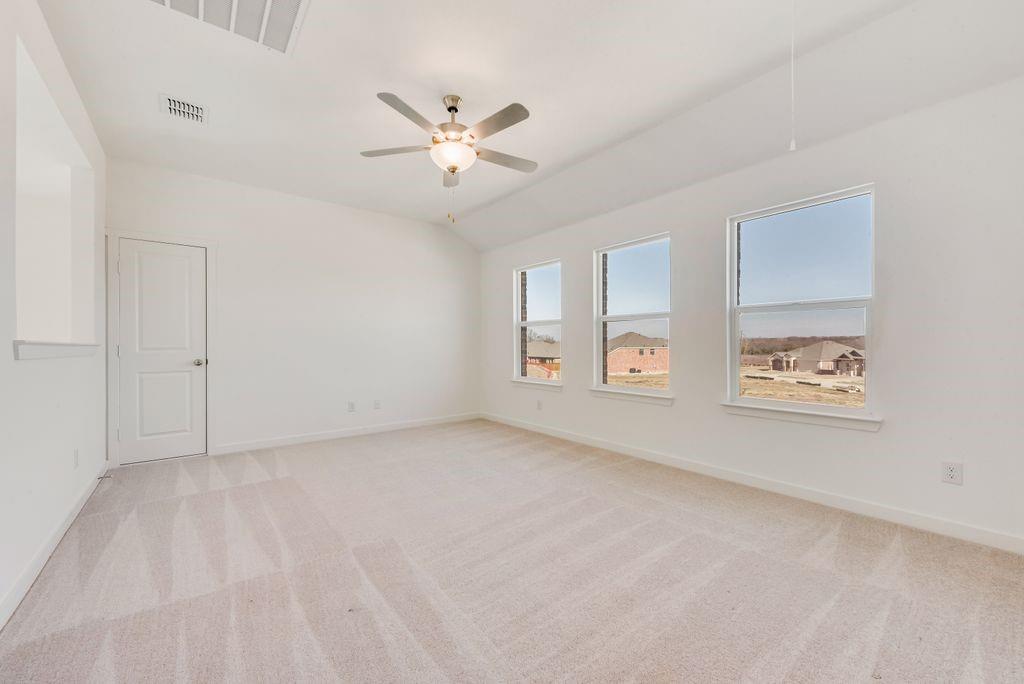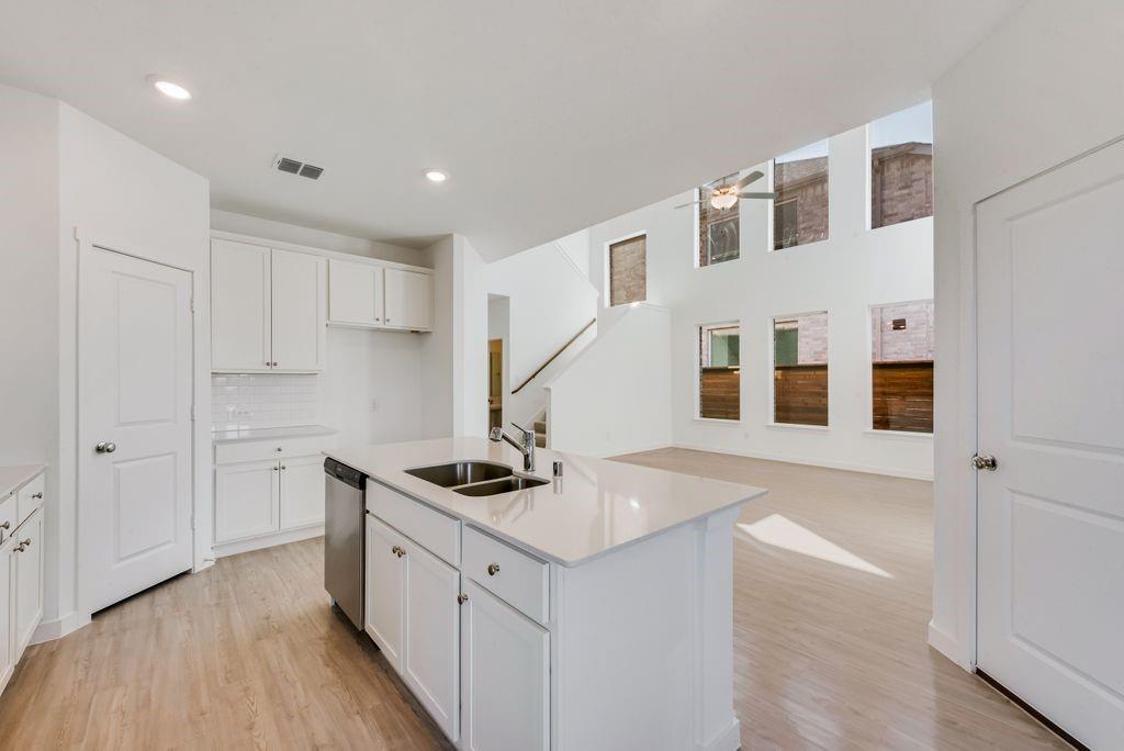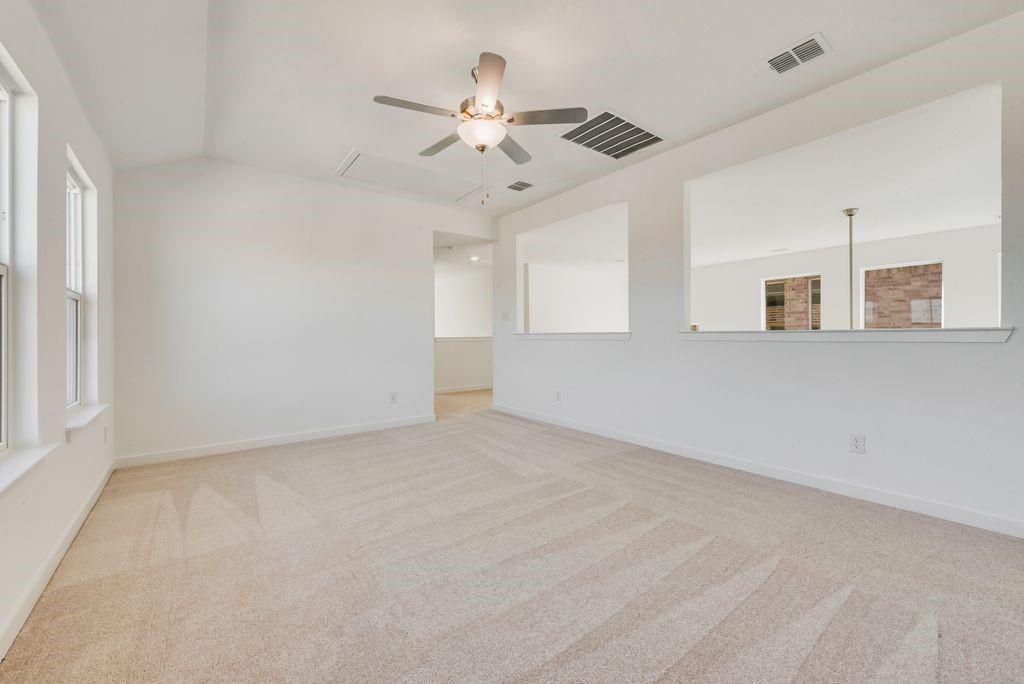 LENNAR - Solterra - The two-story home has a versatile layout with everything residents need to live comfortably. Beside the foyer is a convenient study, while down the hall is the open concept living area which features a living room, kitchen and breakfast nook with access to a covered patio. The owner’s suite is on the first floor, while upstairs are two additional bedrooms and a game room loft.