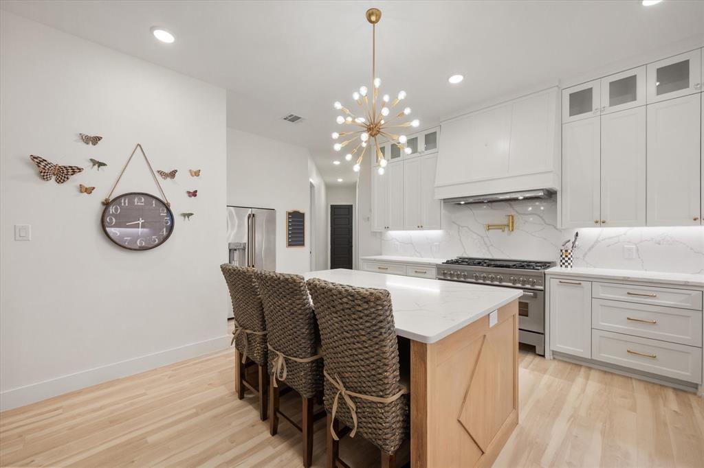 Custom finishes, high end craftsmanship, and and an abbundance of storage throughout the entire house. Quartzite countertops and full custom inset cabinetry grace the kitchen and bathrooms. A 48 inch gas range with double ovens, ceiling height cabinetry, oversized pantry, and built in microwave drawer elevate the chef’s dream kitchen. Interior brick archways provide architectural beauty and natural sound separation between living, dining, and kitchen areas without sacrificing gathering and entertaining space.