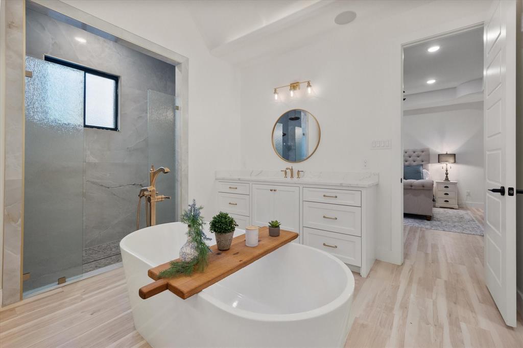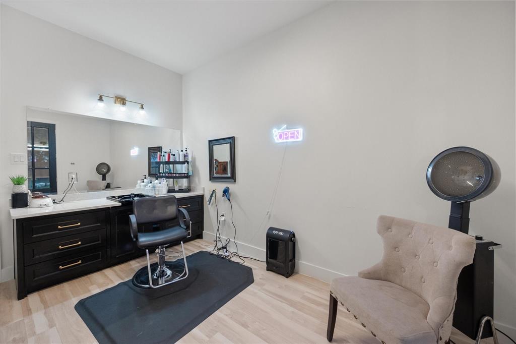 The primary suite is a private retreat with direct porch access, a luxurious double entry shower, large soaking tub, and dual sided walk in closet that is attached to the laundry room with custom laundry chute from the second floor. Additional highlights include luxury waterproof flooring throughout the first floor, private office, dog wash station, and workspace currently being used as a salon with access from outside. Second & third floors offer 2 bedrooms, media room, additional study areas, and expansive game room. Wired for surround sound & Savant smart home technology this home is the total package for refined country living.