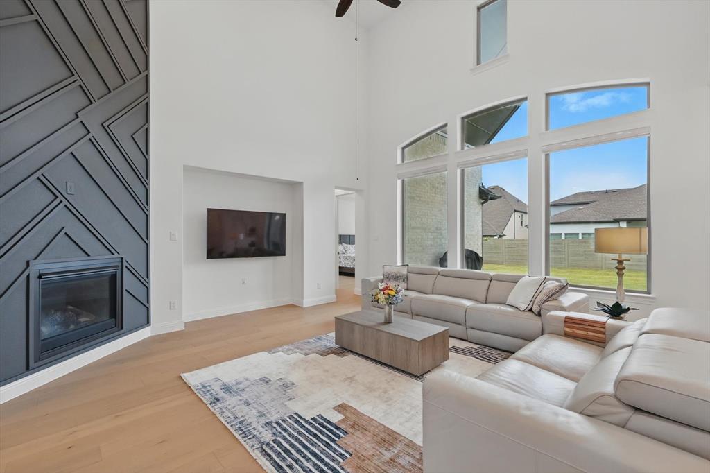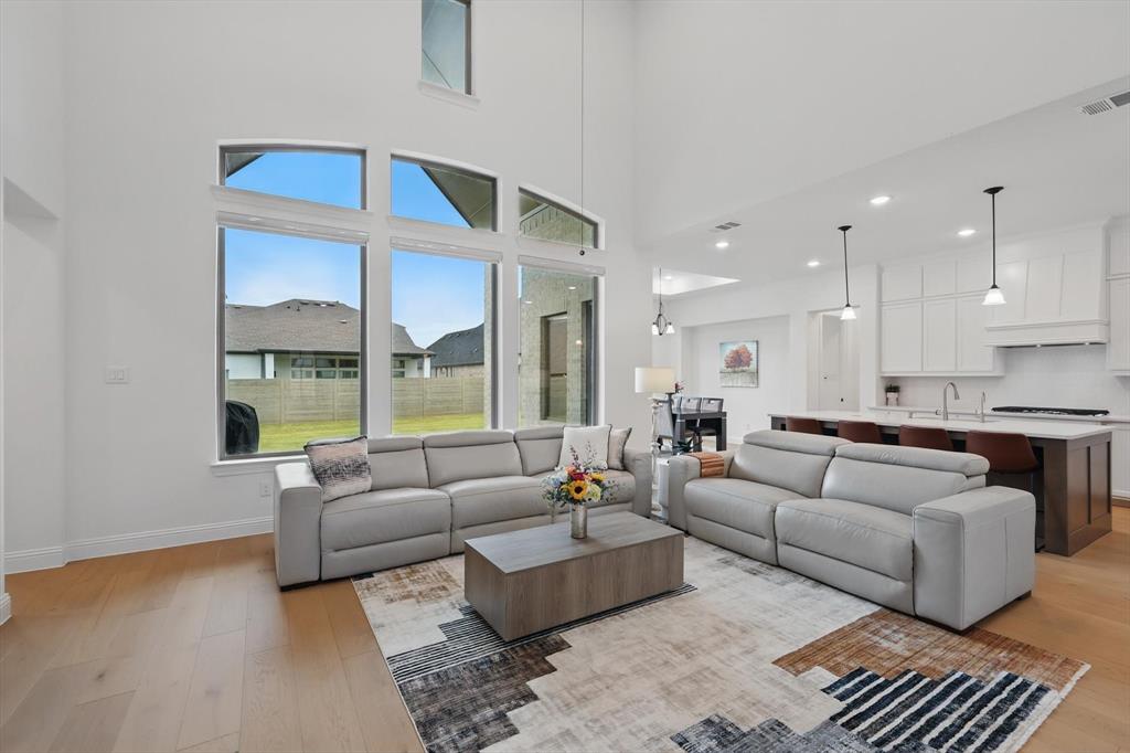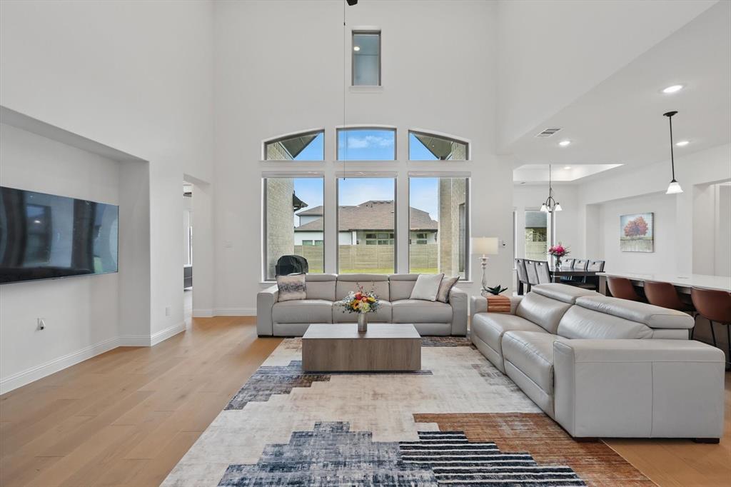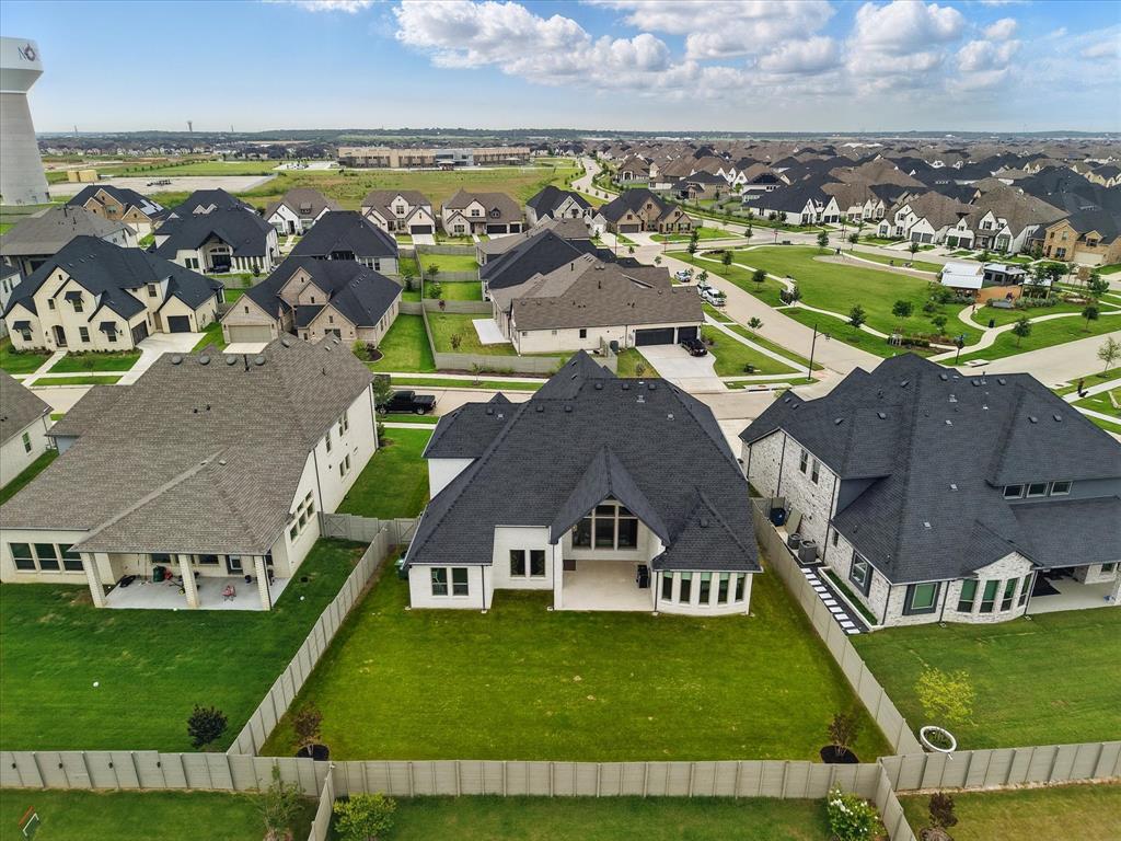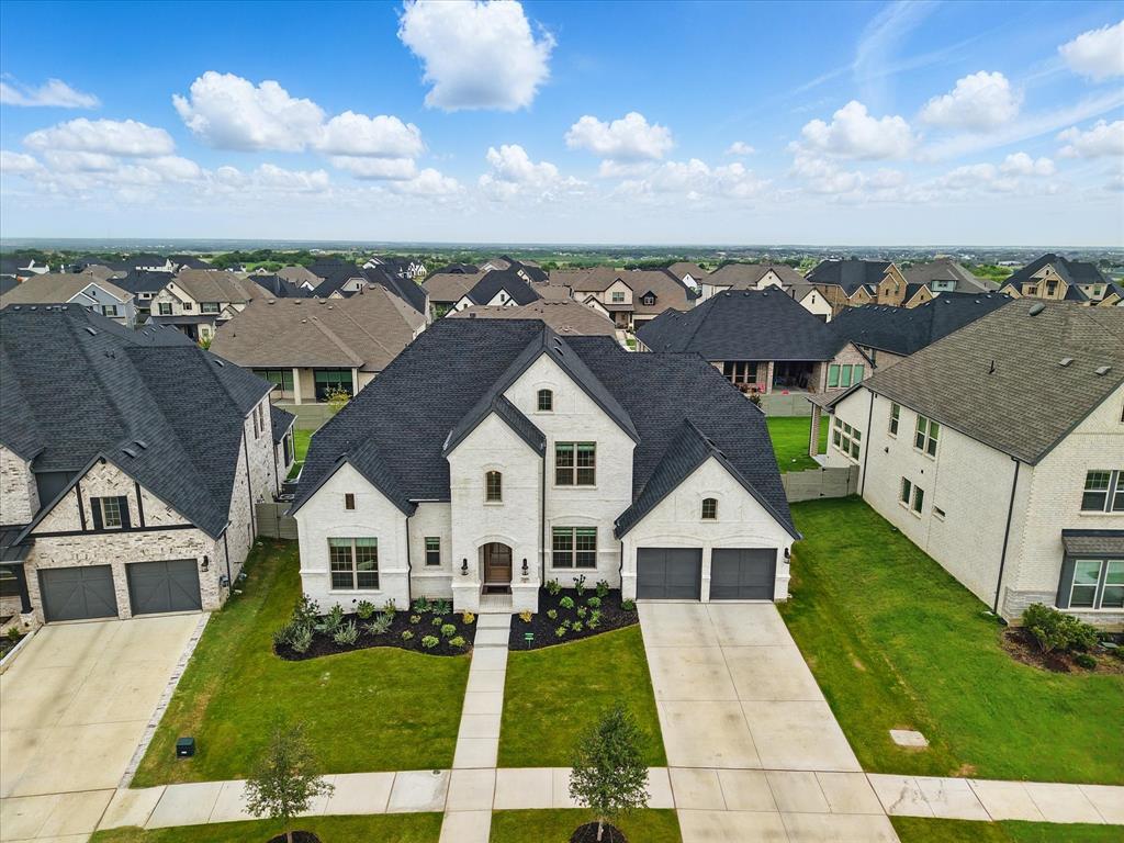Welcome to this nearly new Coventry-built home featuring the highly sought-after Ames floor plan, nestled in the award-winning Harvest community and the prestigious Argyle ISD. Perfectly positioned near 35W for easy commuting, this home sits on a cul-de-sac in a prime spot within the neighborhood just a short walk to the elementary school, kayak pond and parks. With 5 bedrooms and 4.5 baths, this home is thoughtfully designed for modern living. A guest suite on the main level offers ideal flexibility for multigenerational living or visiting guests. The open-concept layout is filled with top-of-the-line finishes and loaded with premium upgrades, including electronic shades on the main level for both comfort and convenience.The 3-car tandem garage features an electric vehicle charging station and epoxy flooring. The extended lot offers endless outdoor potential with plenty of room for a pool, hot tub, trampoline, play set, or your dream outdoor entertaining space. Enjoy peace of mind with a transferable 2- and 10-year builder warranty, giving you all the benefits of new construction without the wait. This home delivers luxury, location, and lifestyle in one exceptional package. Don’t miss the opportunity to make it yours!