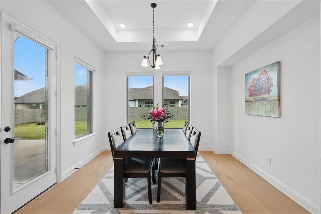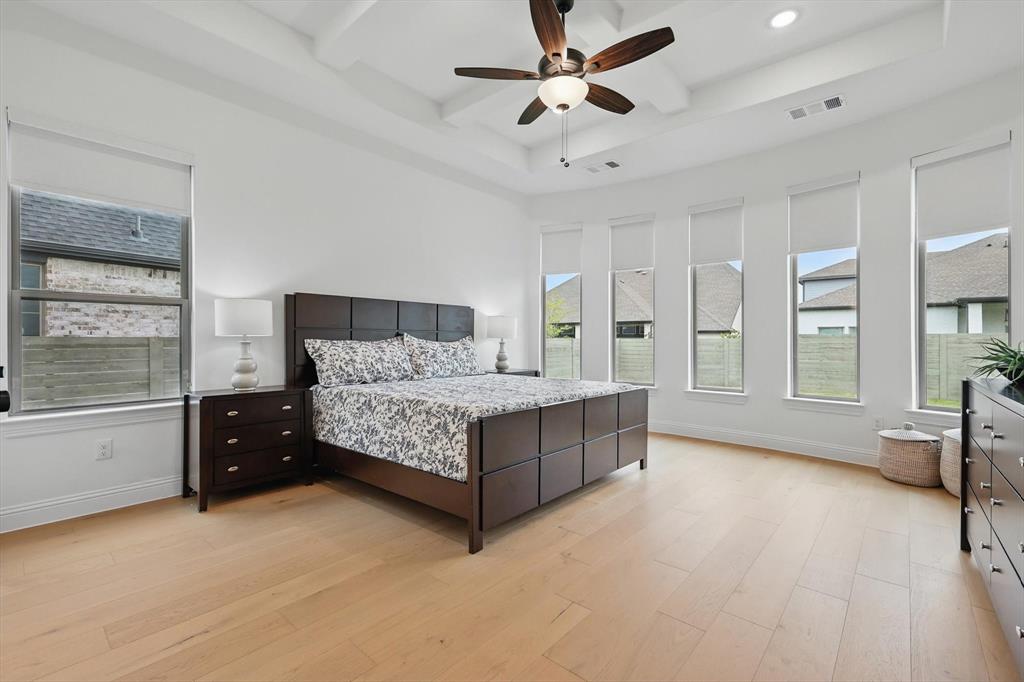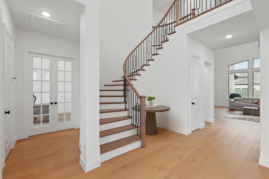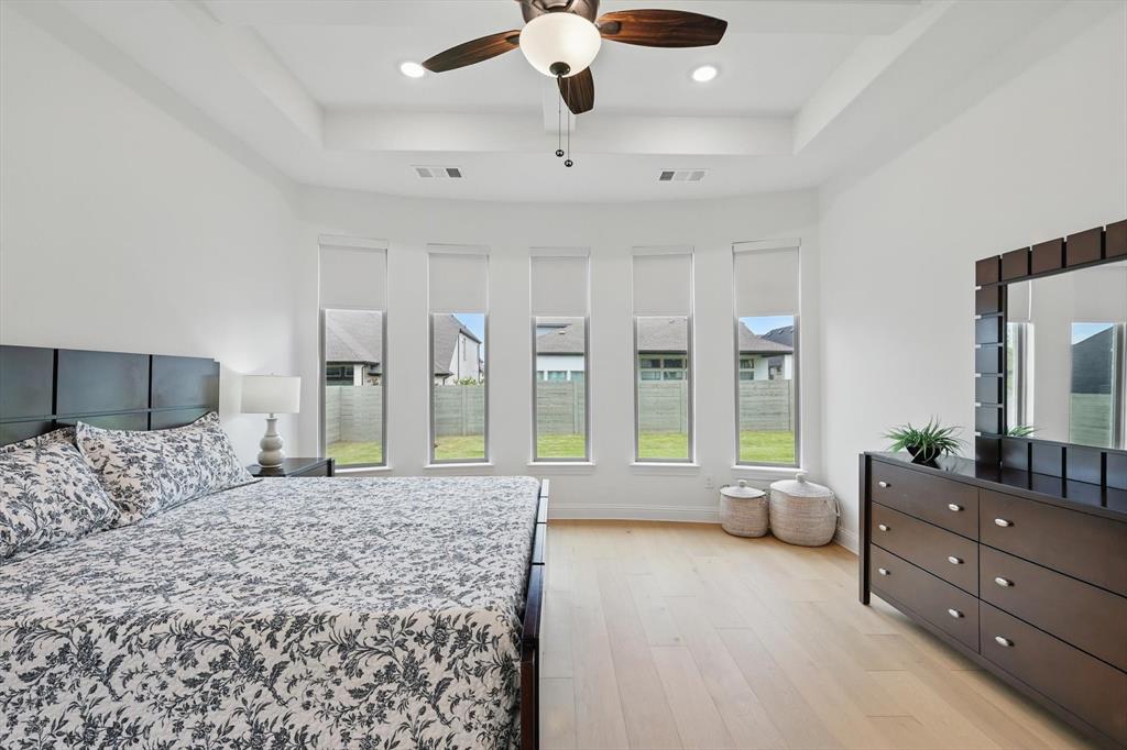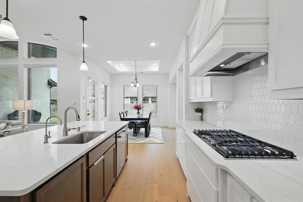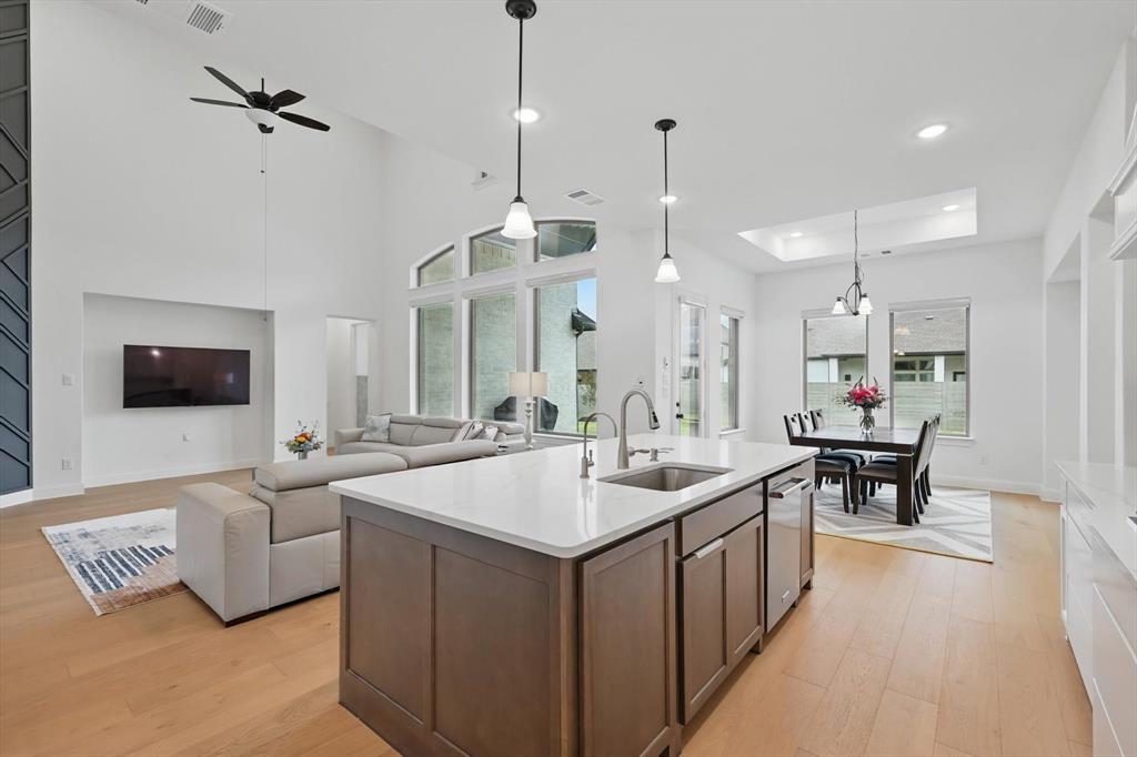 Welcome to this nearly new Coventry-built home featuring the highly sought-after Ames floor plan, nestled in the award-winning Harvest community and the prestigious Argyle ISD. Perfectly positioned near 35W for easy commuting, this home sits on a cul-de-sac in a prime spot within the neighborhood just a short walk to the elementary school, kayak pond and parks. With 5 bedrooms and 4.5 baths, this home is thoughtfully designed for modern living. A guest suite on the main level offers ideal flexibility for multigenerational living or visiting guests. The open-concept layout is filled with top-of-the-line finishes and loaded with premium upgrades, including electronic shades on the main level for both comfort and convenience.The 3-car tandem garage features an electric vehicle charging station and epoxy flooring. The extended lot offers endless outdoor potential with plenty of room for a pool, hot tub, trampoline, play set, or your dream outdoor entertaining space. Enjoy peace of mind with a transferable 2- and 10-year builder warranty, giving you all the benefits of new construction without the wait. This home delivers luxury, location, and lifestyle in one exceptional package. Don’t miss the opportunity to make it yours!