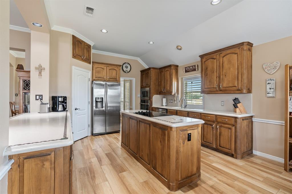 Corian countertops throughout — including hearths and window ledges. Beautiful wood imitation title all throughout, plush carpet