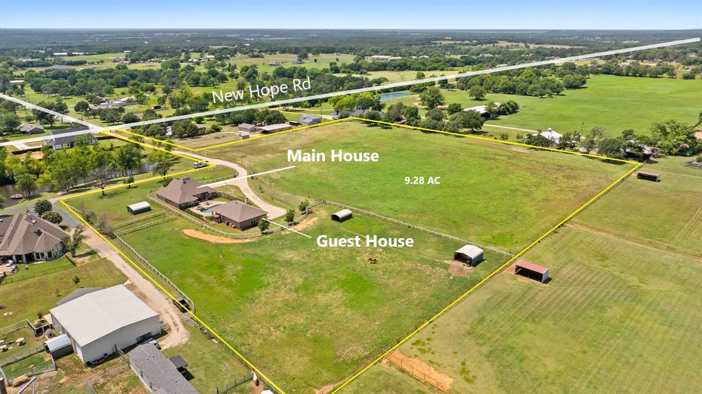 This 9+ Ac Offering is a compilation of 4 parcels. Single-story main house and a single-story guest house. Located outside of the city boundary and within all city conveniences which highlights its desirability. Land comes with more Freedoms of use and enjoyment than any parcel located within the city's boundaries - No zoning, NO HOA, No Deed restrictions. Bring your imagination for any use - Living or place of business, or both. No floodway, flat terrain, multiple fenced pastures.