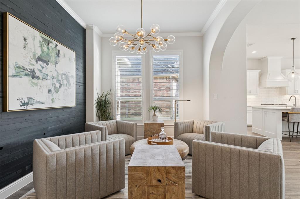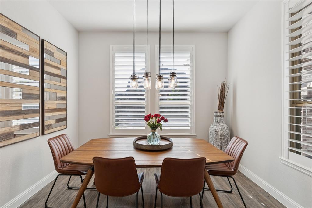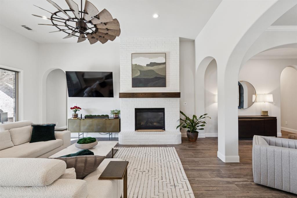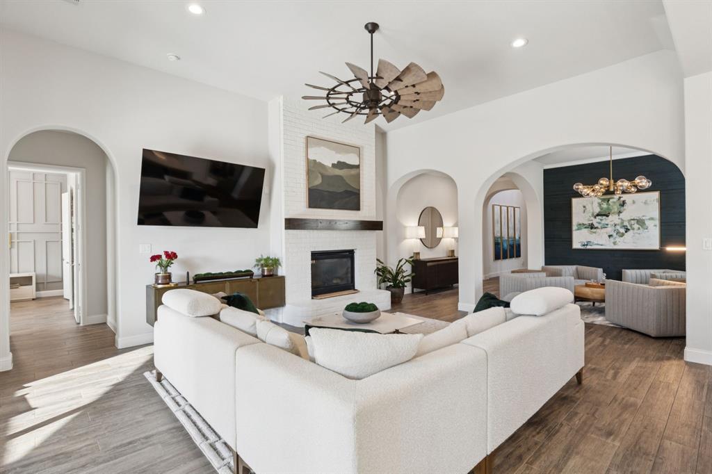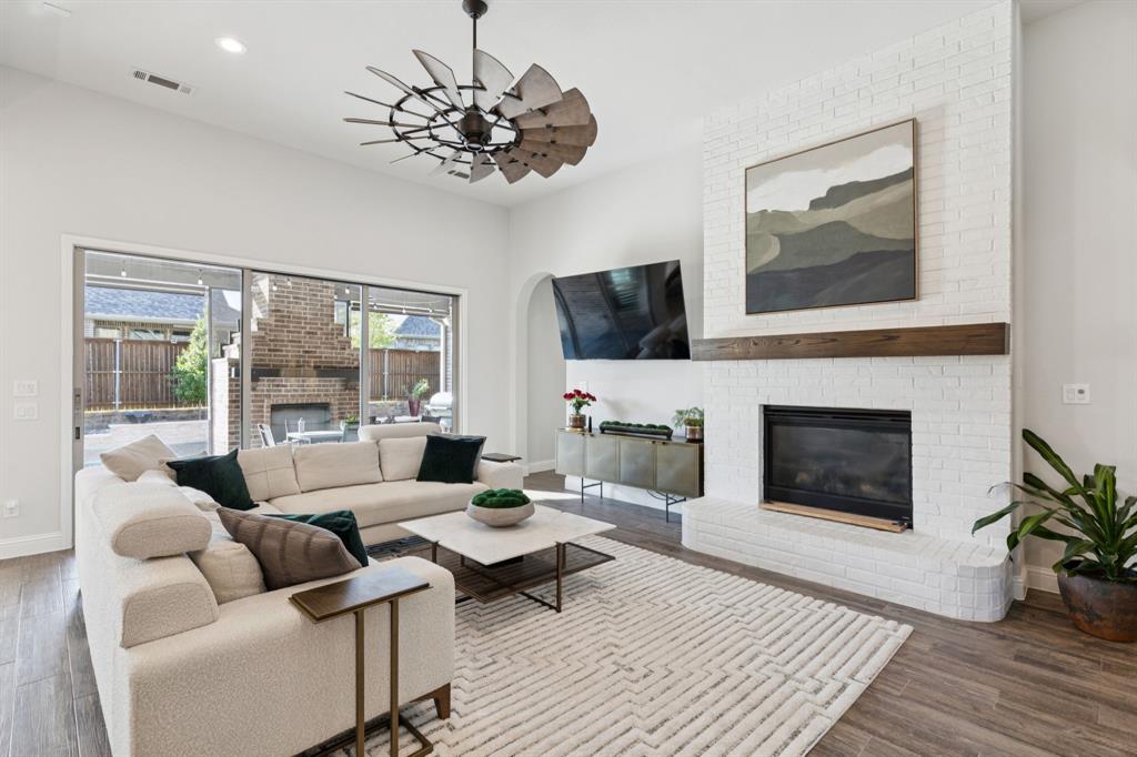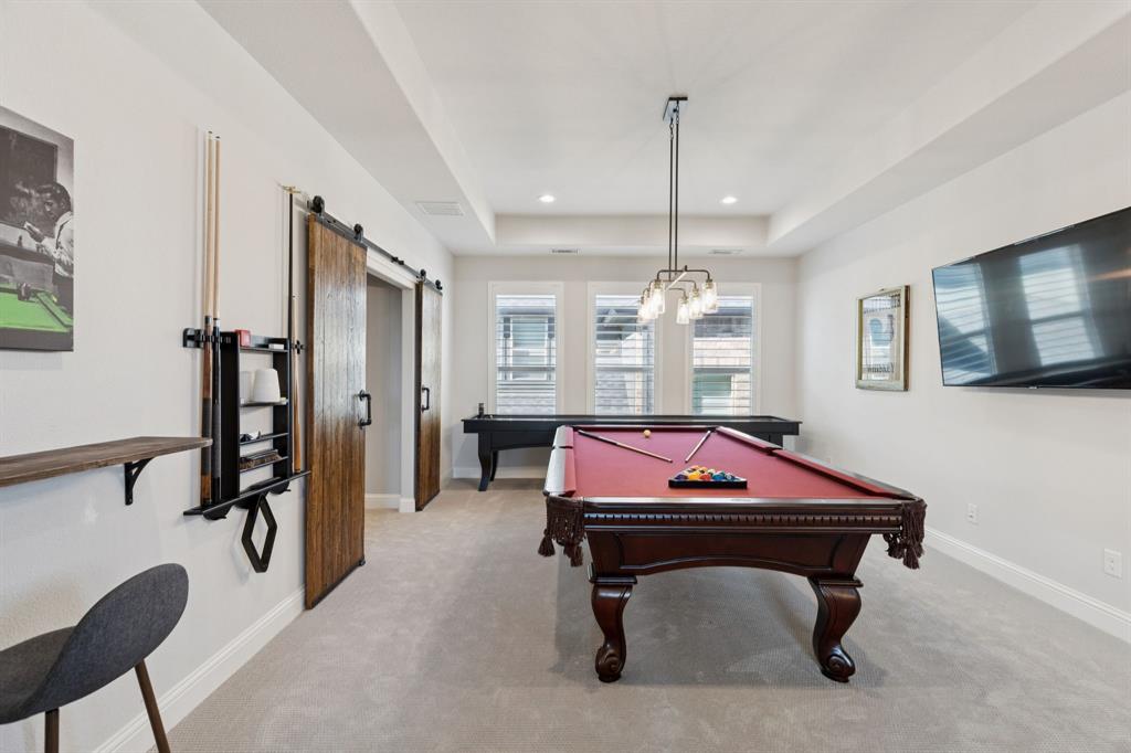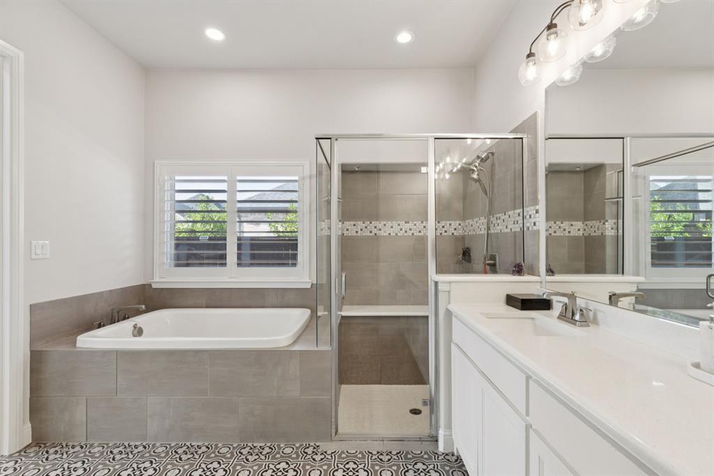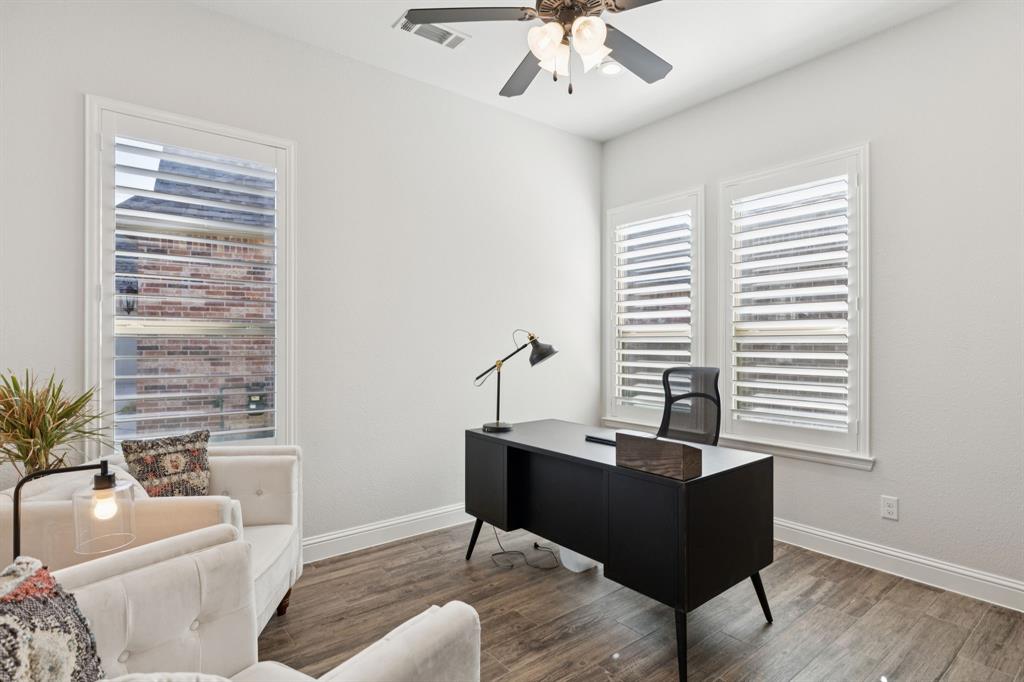 Luxurious active living in this gorgeous Light Farms home with backyard OASIS! This 4 bedroom designer home features a private separate office, two spacious dining areas, light & bright family room & kitchen in a thoughtful open floor plan. Family room features cozy fireplace with beautiful sliding glass doors for access to patio & pool. Chef's kitchen features white cabinets, stainless steel appliances, gas cooktop, large island with bar seating, under counter lighting & ample pantry. Primary suite is oversized with seating area, soaking tub, walk in shower, dual sink & vanity & large walk-in closet. Secondary bed & full bath downstairs. Upstairs find large game room PLUS media room with two additional bedrooms & full bath. DREAM BACKYARD features pool with spa & water feature, large covered patio with fireplace, spacious uncovered patio space to enjoy the sun, beautiful landscaping, artificial turf, automatic screens on patio for your comfort! SO MANY EXTRAS in this one including designer touches throughout from lighting to hardware to wall treatments in tasteful transitional colors, plantation shutters, lots of storage space, 3 car garage & more. Located in highly sought after Prosper ISD with all the active amenities you and your family could want! Don't miss this one!