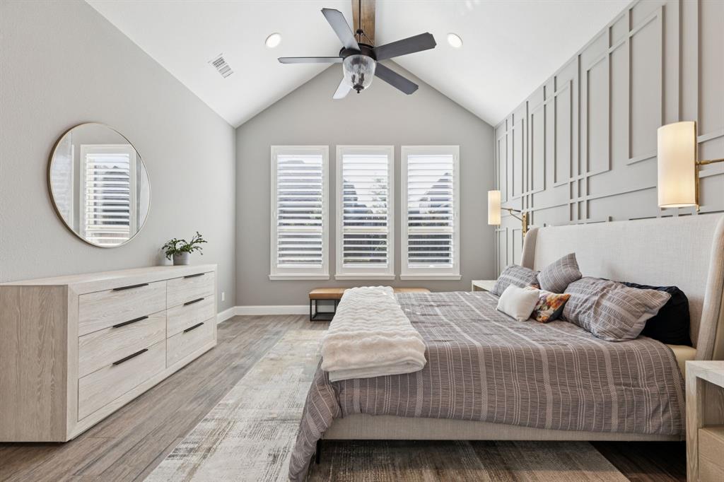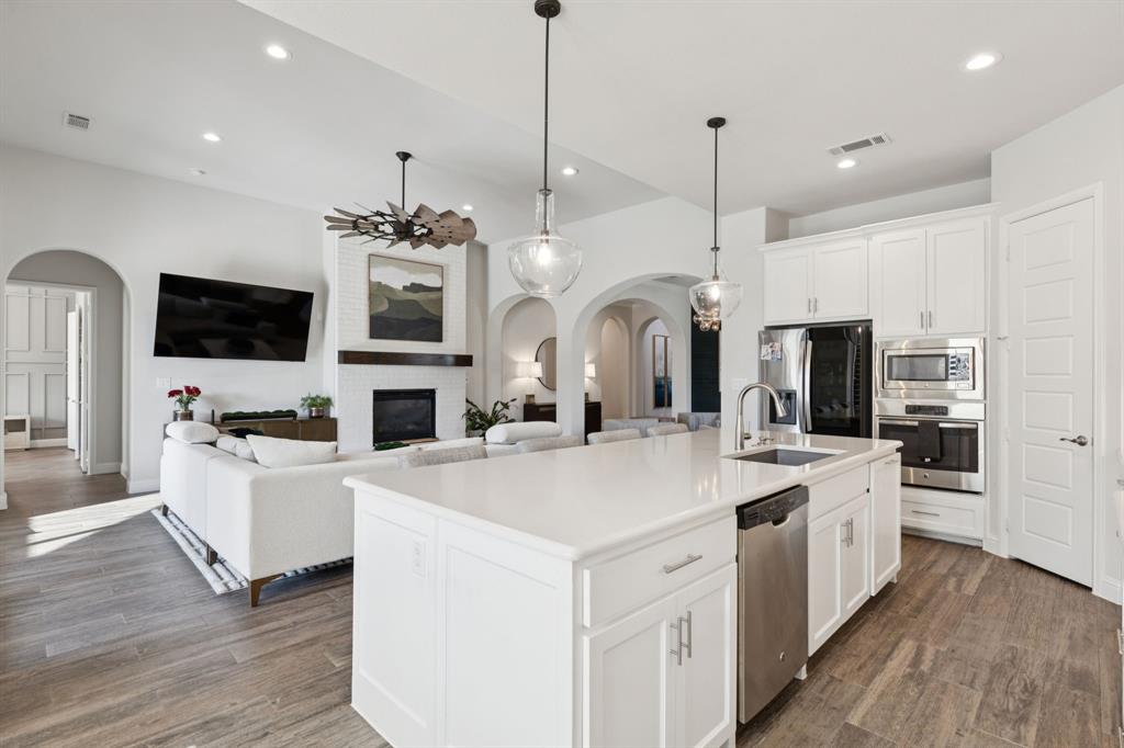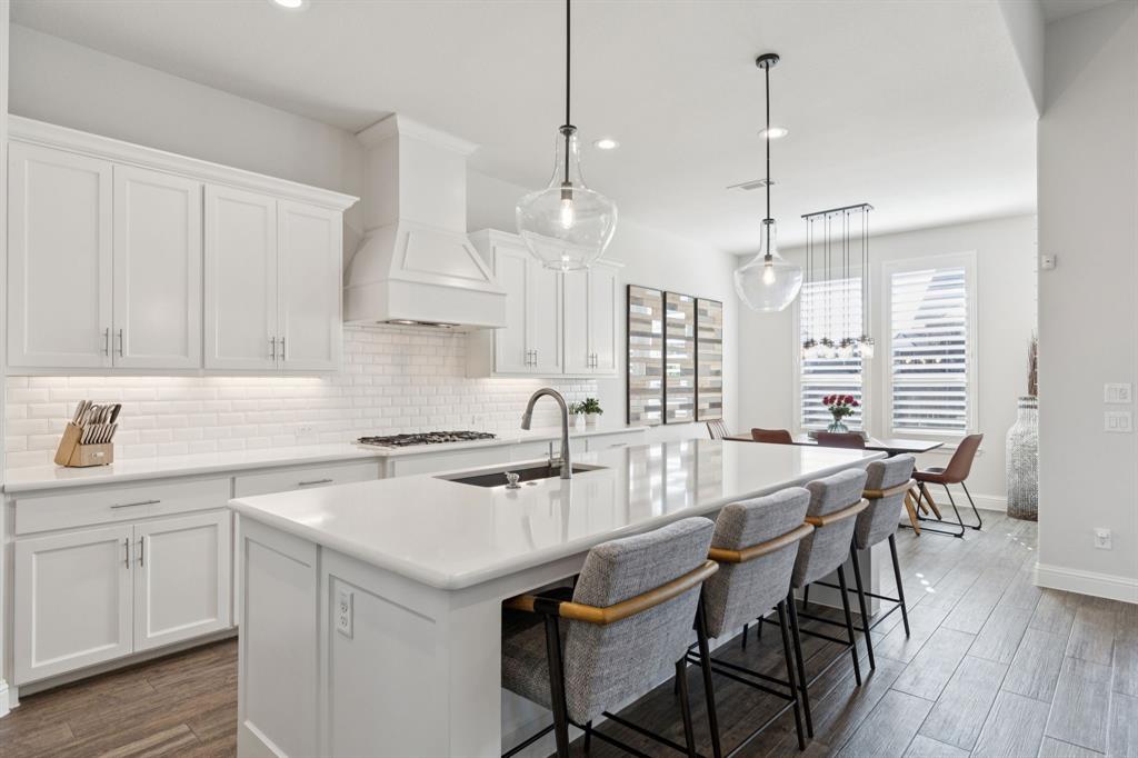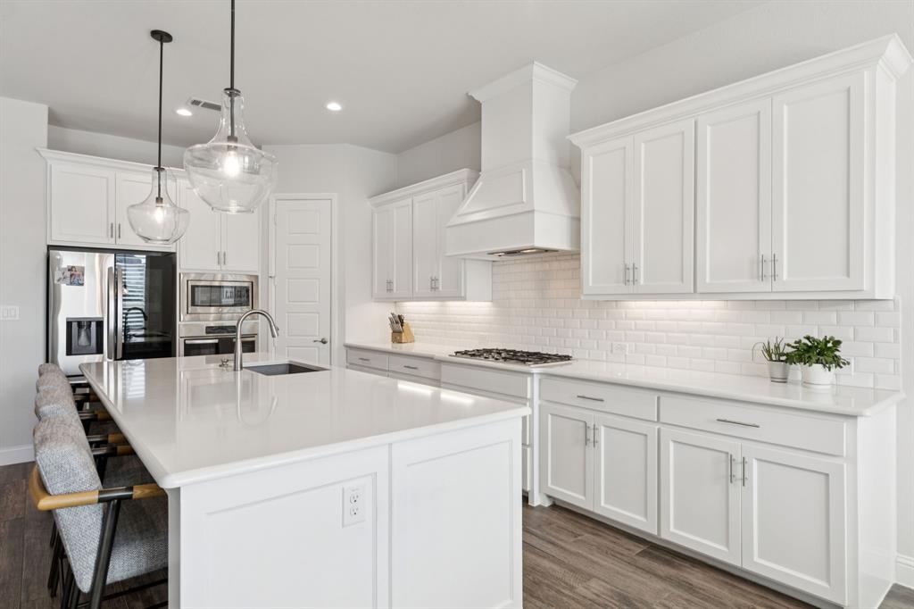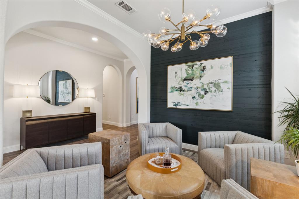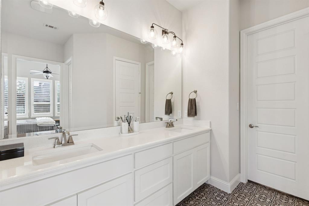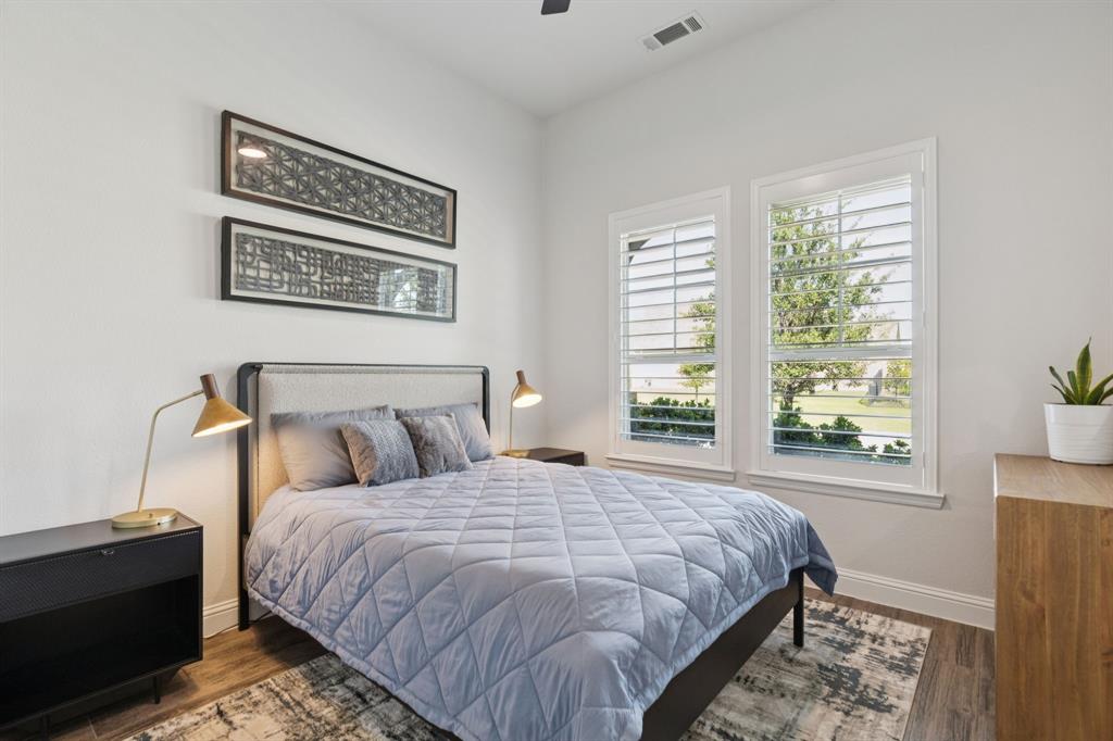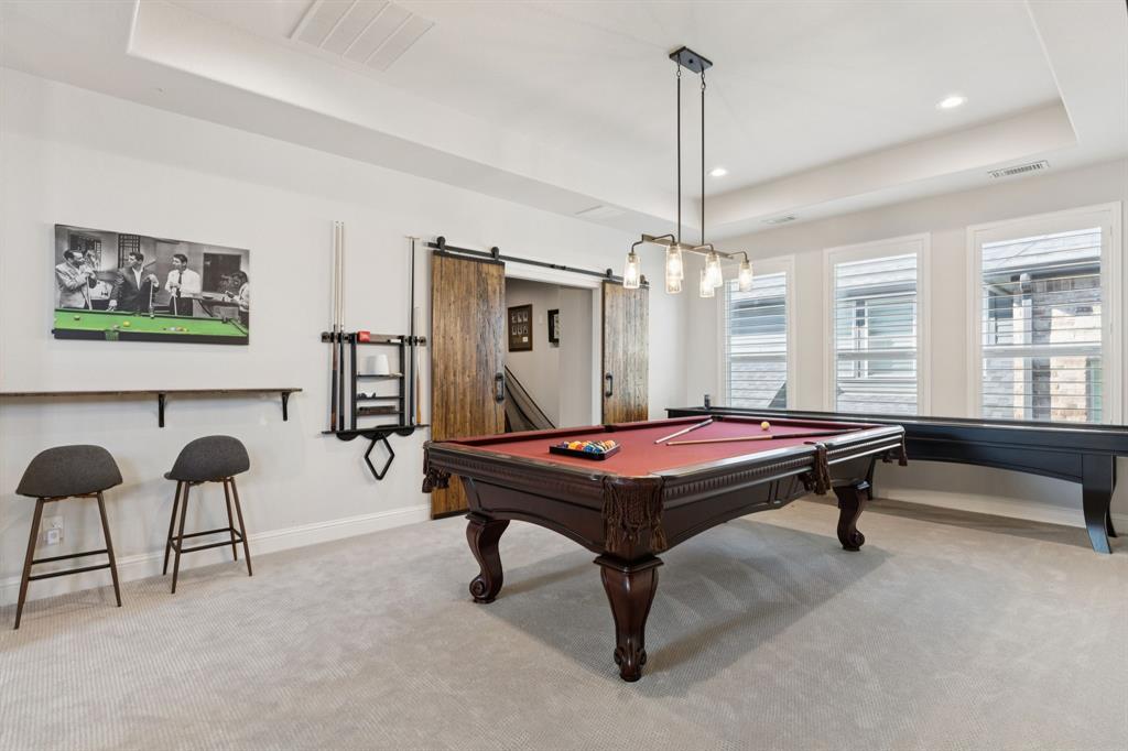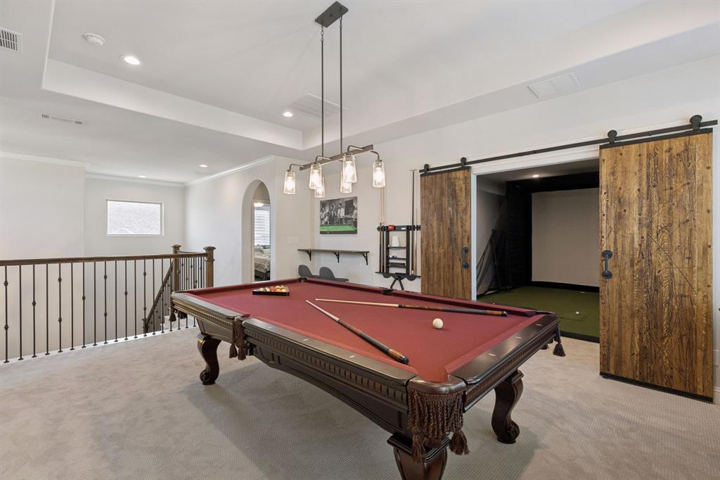 Luxurious active living in this gorgeous Light Farms home with backyard OASIS! This 4 bedroom designer home features a private separate office, two spacious dining areas, light & bright family room & kitchen in a thoughtful open floor plan. Family room features cozy fireplace with beautiful sliding glass doors for access to patio & pool. Chef's kitchen features white cabinets, stainless steel appliances, gas cooktop, large island with bar seating, under counter lighting & ample pantry. Primary suite is oversized with seating area, soaking tub, walk in shower, dual sink & vanity & large walk-in closet. Secondary bed & full bath downstairs. Upstairs find large game room PLUS media room with two additional bedrooms & full bath. DREAM BACKYARD features pool with spa & water feature, large covered patio with fireplace, spacious uncovered patio space to enjoy the sun, beautiful landscaping, artificial turf, automatic screens on patio for your comfort! SO MANY EXTRAS in this one including designer touches throughout from lighting to hardware to wall treatments in tasteful transitional colors, plantation shutters, lots of storage space, 3 car garage & more. Located in highly sought after Prosper ISD with all the active amenities you and your family could want! Don't miss this one!