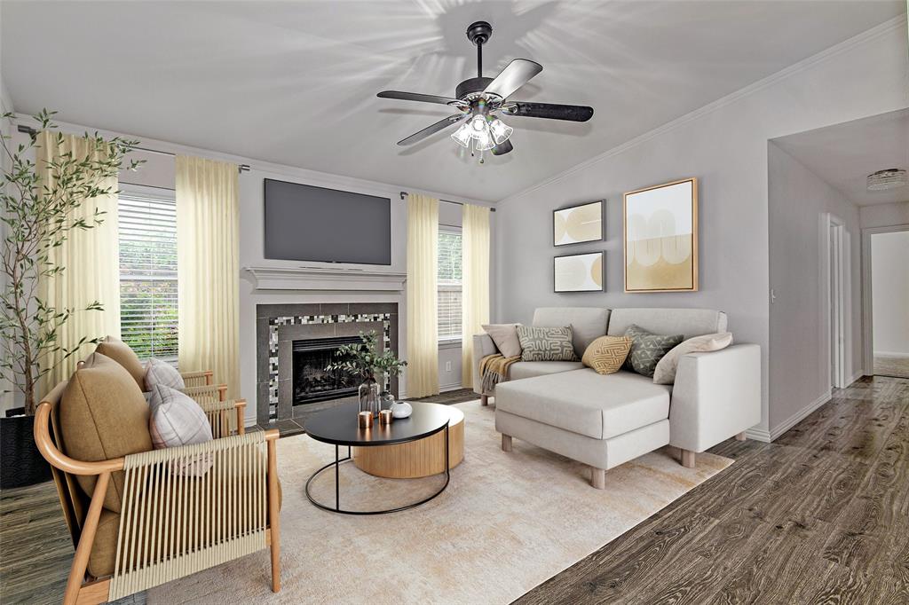 Charming and thoughtfully updated, this 3-bedroom, 2-bathroom home in the sought-after Mansfield ISD is move-in ready! Step into a spacious living area filled with natural light, featuring a stylish wood-burning fireplace that adds warmth and character.
