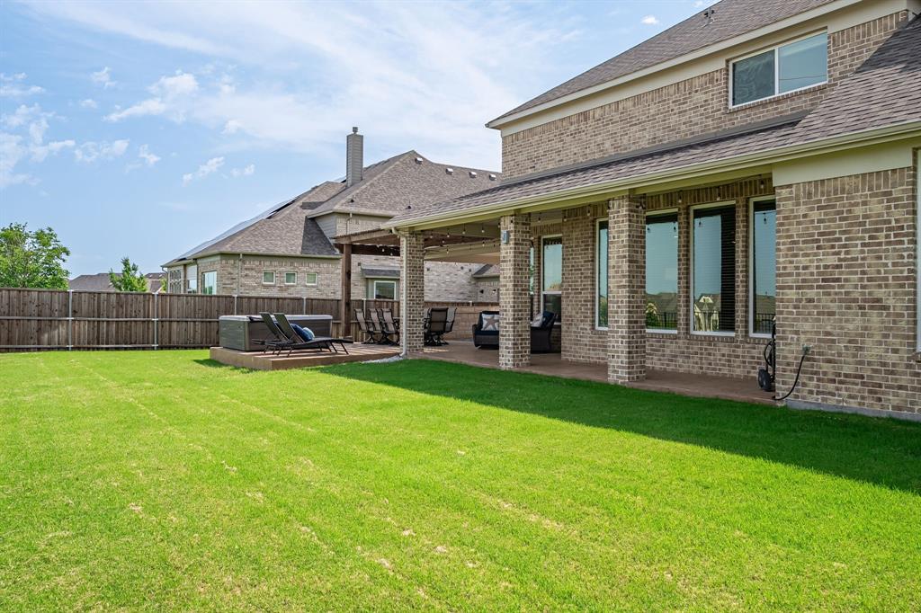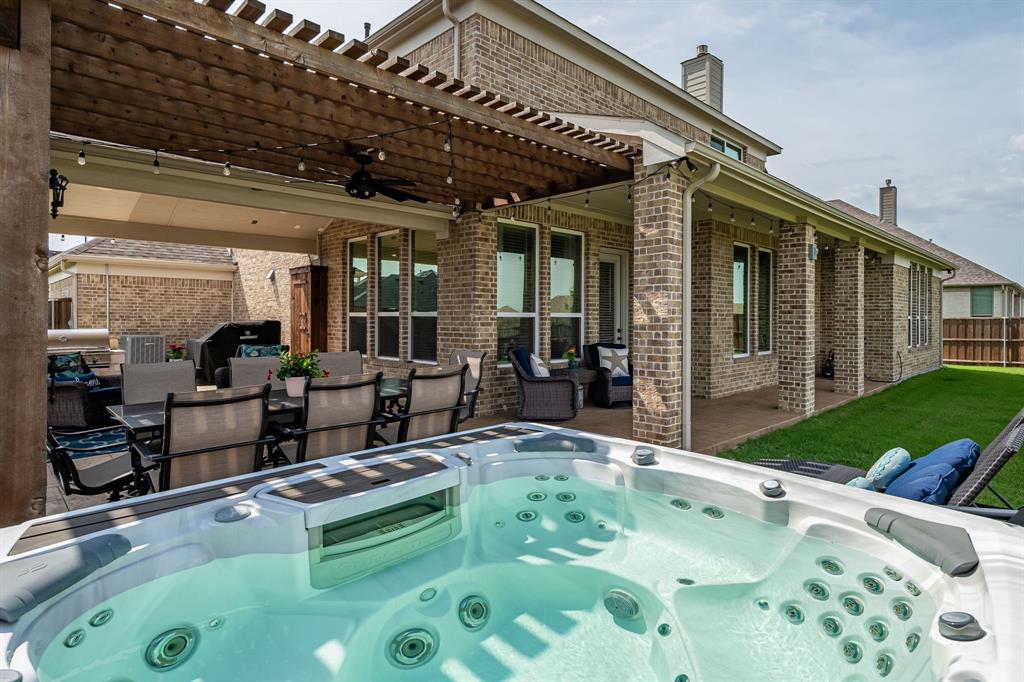 House appraised on July 22nd for $1,011,000- walk in with substantial equity or use equity for BUYDOWN! Welcome to this stunning Luxury Custom home with over 4419 SF on a coveted .31-acre premium Greenbelt lot with no rear neighbors in the prestigious Falls of Prosper community. Masterfully crafted for both entertaining and privacy, this exquisite residence offers serene views and plenty of space to add a pool. You will love this home for its spacious 5 bedrooms, 4 bathrooms, 3 car garage, primary and guest suite with two full bathrooms on the first floor, separate office, game room and media room, and elegant formal living and dining areas highlighted by custom builtins and a dramatic spiral staircase. Enjoy upgrades galore, including an extended back patio with an outdoor kitchen complete with a griddle, grill, and fridge, plus a $24K Sundance hydrotherapy spa for ultimate relaxation. Additional highlights include a custom stone fireplace, rich Red Oak cabinetry, a chef’s kitchen with double ovens, upgraded lighting, walk-in closets in every bedroom, a large laundry room, walk-in pantry, and two energy efficient tankless water heaters. Located in Prosper ISD with greenbelt walking trails behind the home and in the community with ponds. Only minutes from shopping, dining, and Dallas North Tollway. This is the best priced luxury home per sq ft in the area!