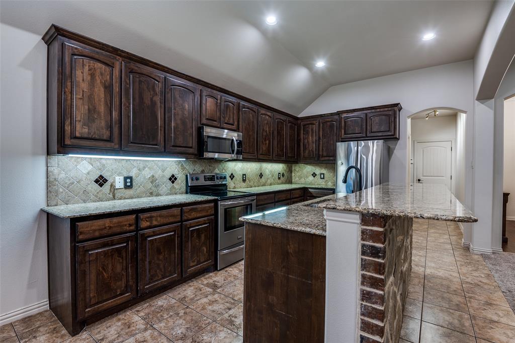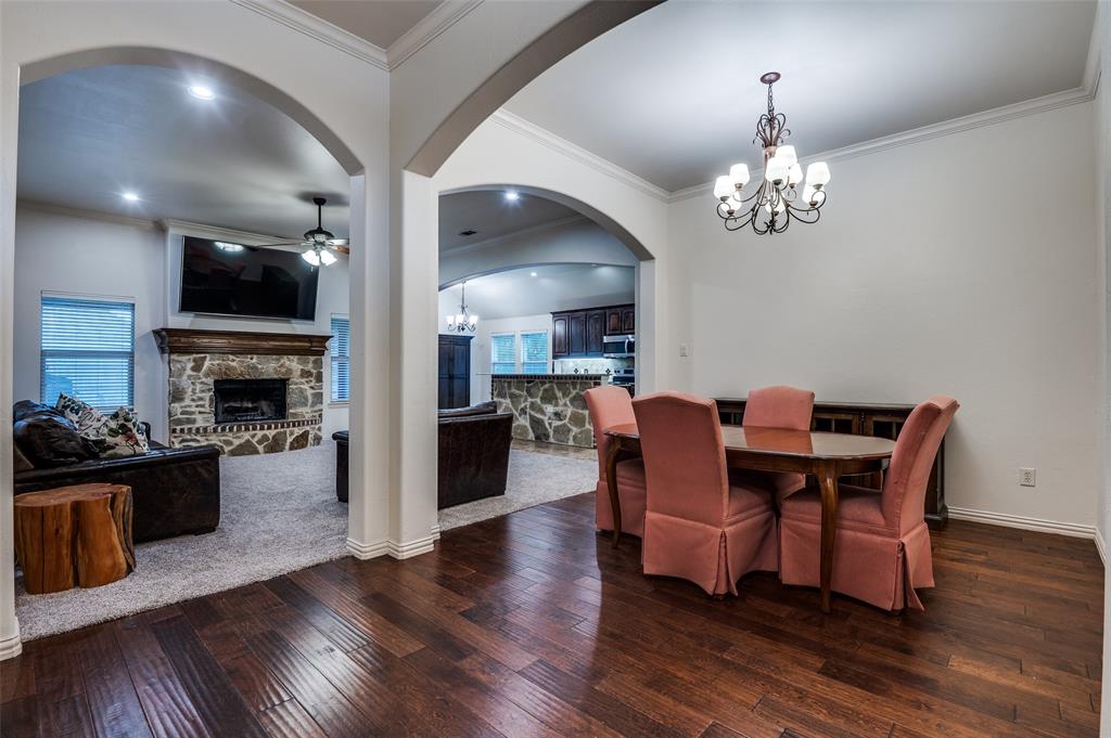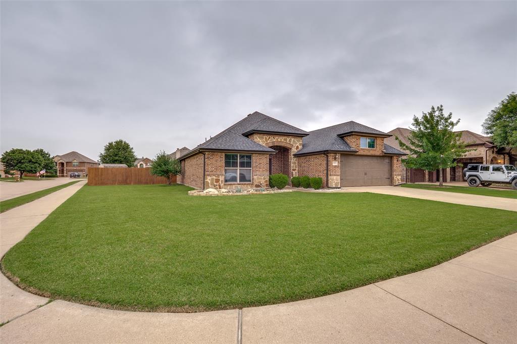 MOVE-IN-READY custom home by Angel Garcia, ideally located on a spacious corner lot just under a quarter of an acre. This 4-bedroom, 3-bathroom home offers great curb appeal with a striking brick and stone exterior. Inside, warm wood floors flow through the entryway and formal dining room, which opens into an inviting living area featuring a stone-accented fireplace. The kitchen boasts a stone-front island, granite countertops, custom wood cabinetry, and a cozy breakfast nook, all designed with both function and style in mind. The oversized primary suite includes a spa-like ensuite with double vanities, granite counters, a large soaking tub, a separate walk-in tiled shower, and a generous walk-in closet. The split-bedroom layout offers added privacy for guests or family, while the spacious backyard features an upgraded custom paver patio that opens to a generous grassy area—perfect for kids, pets, or outdoor entertaining. Double gate on the side of the home offers great spot for boat or RV Parking! A rare combination of comfort, space, and curated updates—this home has been lovingly maintained and is ready to welcome you in. Recent updates include a brand-new AC unit and condenser, new carpet in the bedrooms, fresh interior paint, a new dishwasher, and updated landscaping.