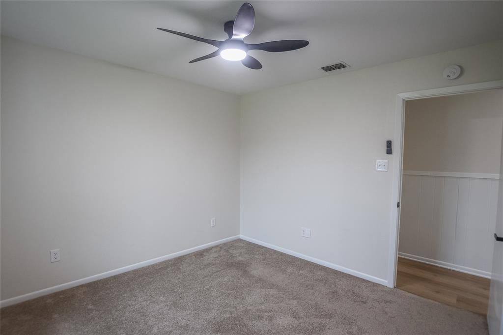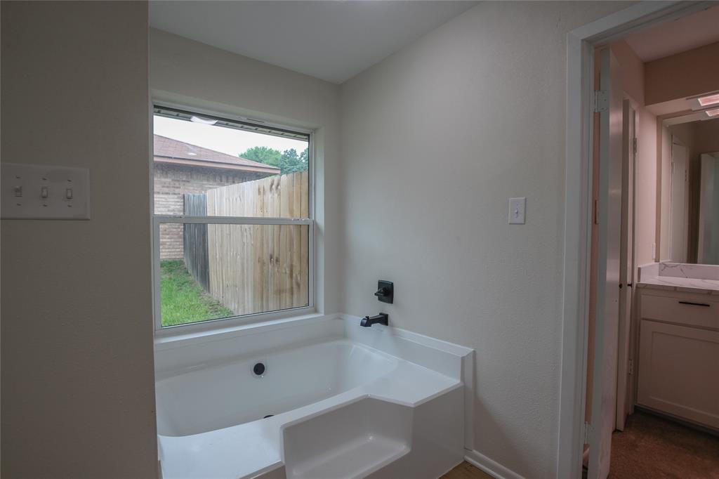 The master suite provides a peaceful retreat with direct access to a private en-suite bathroom, featuring a walk-in shower, jetted tub, and generous cabinetry. Two additional bedrooms share a Jack-and-Jill bathroom with a convenient shower-tub combo, and there’s an additional half bath nearby for guests.