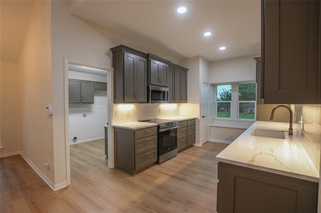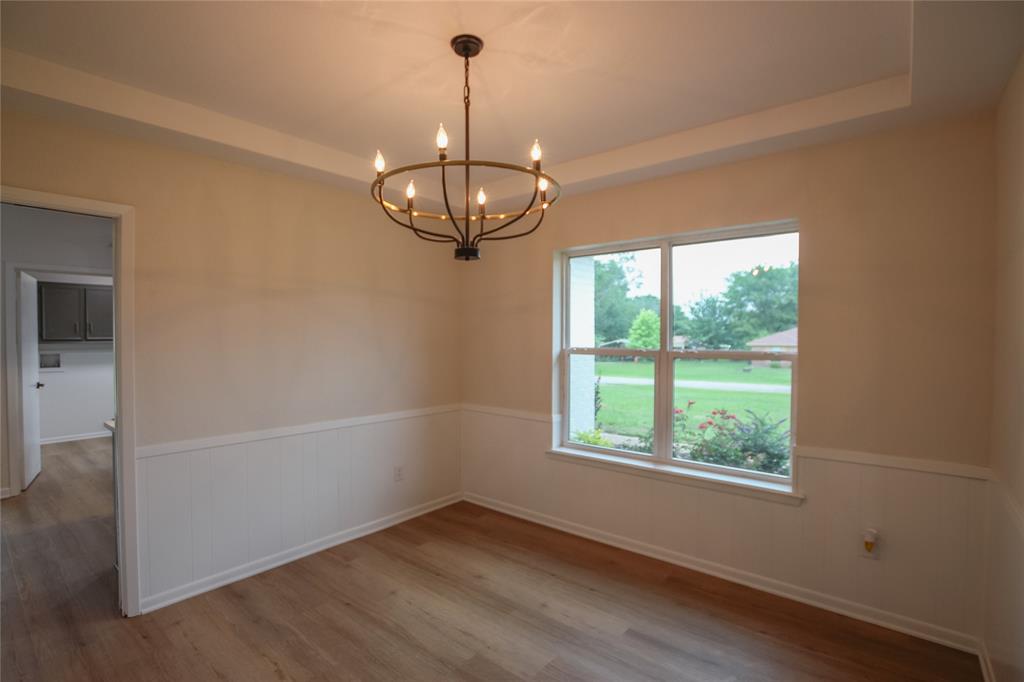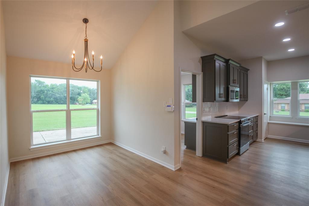 As you step inside, you’re greeted by a formal dining room to your right, anchored by an elegant chandelier that sets the perfect ambience for dinners and special gatherings. Just beyond, the spacious kitchen features ample cabinet space and overlooks the backyard, creating a bright and inviting place to cook and connect. A cozy breakfast nook nestled within the kitchen offers the ideal spot to enjoy your morning coffee.
