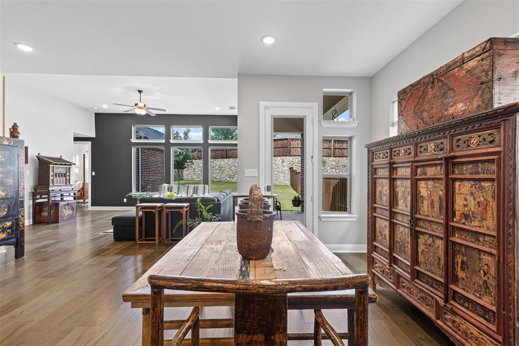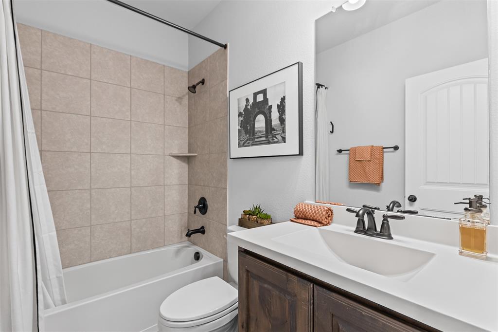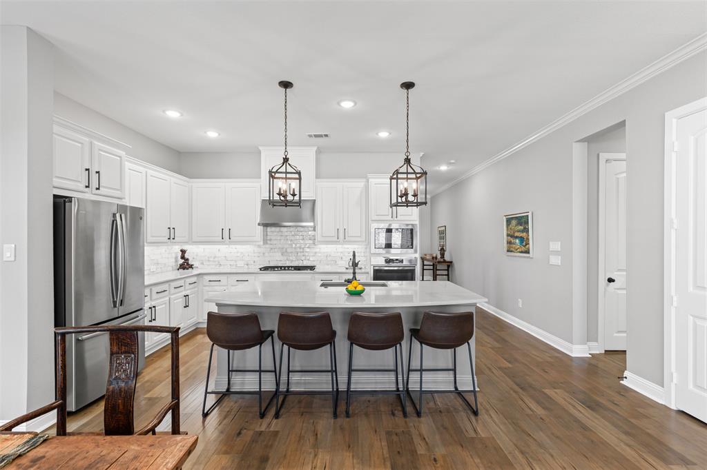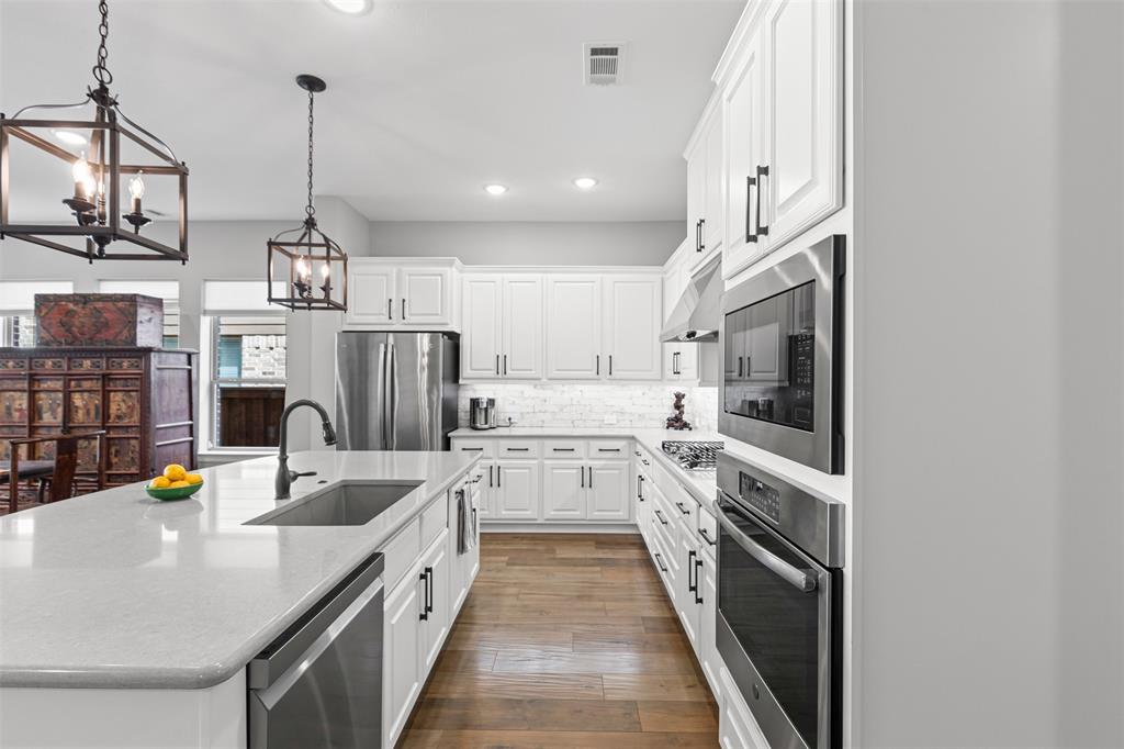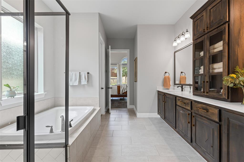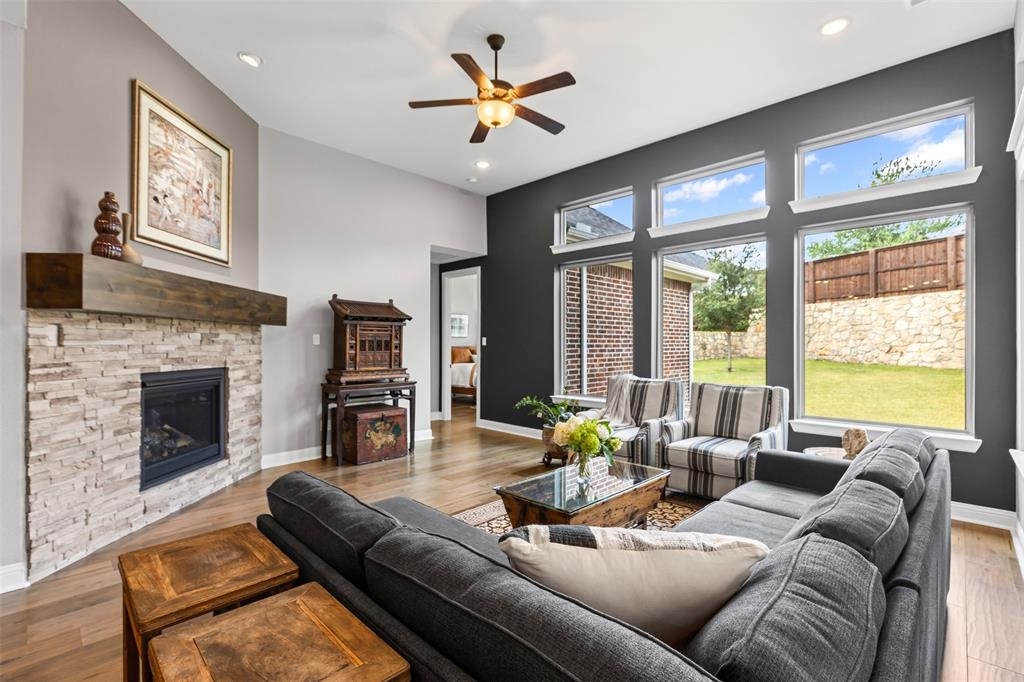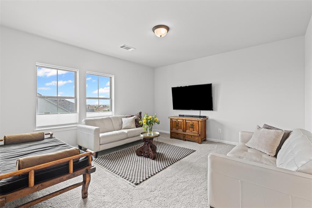 Welcome to 1924 Grey Bark, in Walsh Phase 1! With great curb appeal and a thoughtful layout, this home features open-concept living with a spacious chef's kitchen, large island, stainless steel appliances and seamless flow to the generous dining and living areas. The oversized primary suite is privately tucked away on the first floor with peaceful views into the spacious and private backyard. Upstairs offers three secondary bedrooms with Jack & Jill bath and a large bonus living area—perfect for play, media, or study space. The third bedroom features generous hillside views of Downtown Fort Worth. Additional highlights include energy-efficient construction, and designer selections throughout. Oversized garage with tandem parking, ideal for golf-cart storage. Enjoy all the best of Walsh living just moments from Walsh Elementary, 1-block to the park and playground! Access to hike + bike trails, resort-style pool, parks, on-site elementary, neighborhood market, and brand new Fire Station. Zoned to Aledo ISD!