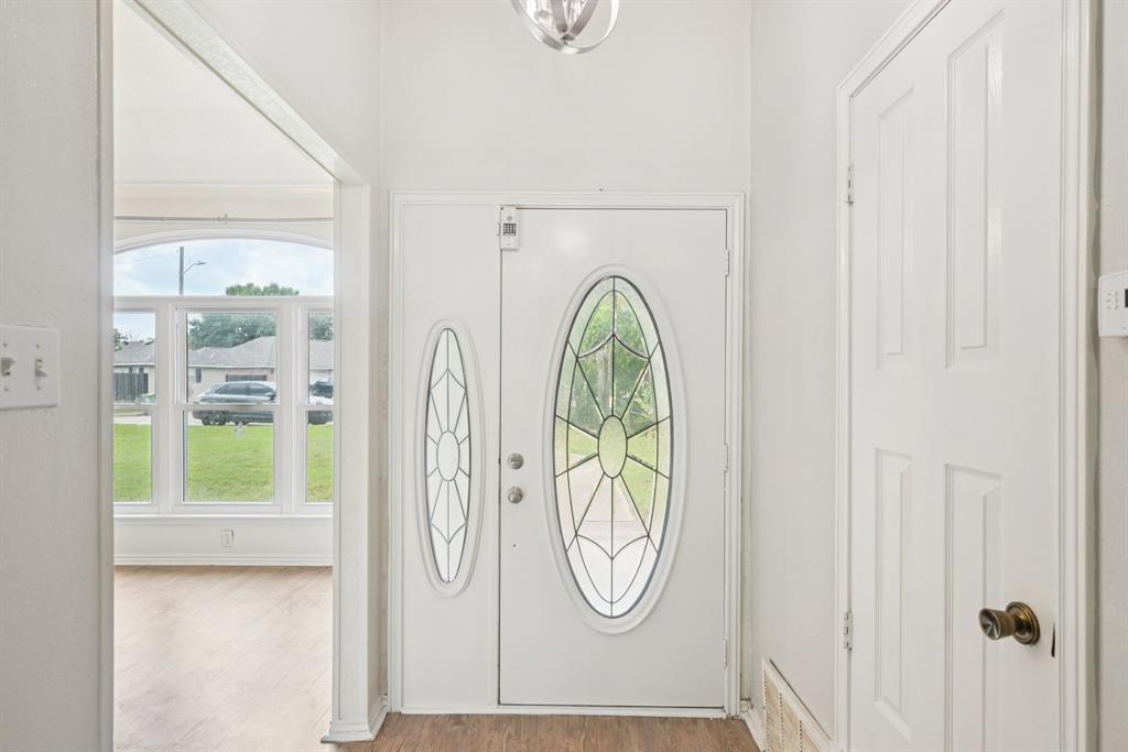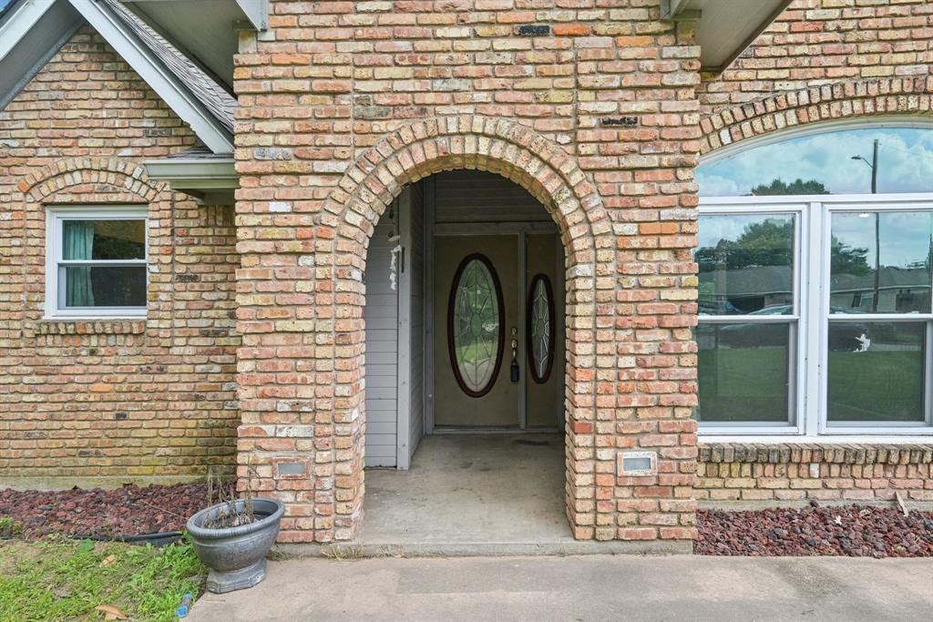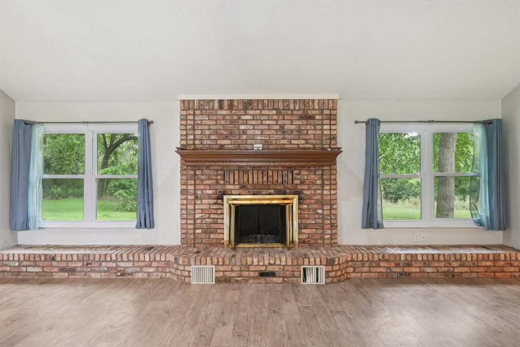 A stately leaded glass front door welcomes you into a spacious foyer, setting the tone for the warmth and comfort that flows throughout. The expansive living room boasts a classic brick wood-burning fireplace—perfect for cozy evenings and relaxed gatherings.