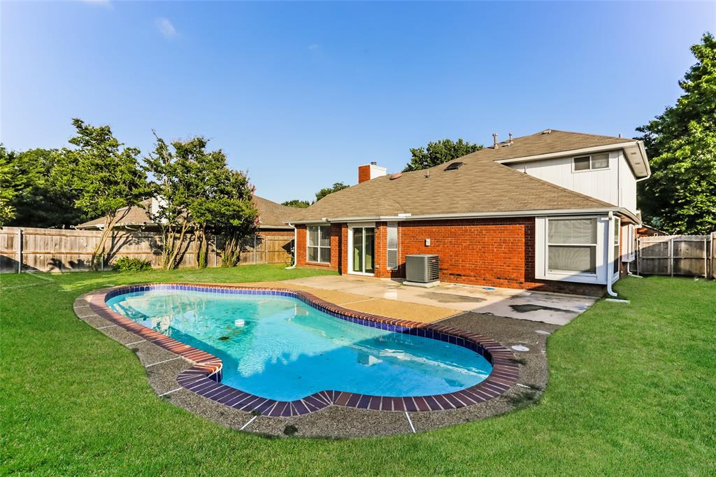 Welcome to 2846 White Oak Drive in Grand Prairie! This 3-bedroom, 2.5-bathroom home features an open floorplan with vaulted ceilings and plenty of natural light. The eat-in kitchen is equipped with stainless steel appliances and a pantry, perfect for daily living and entertaining. A brick fireplace adds a cozy touch to the spacious living area. Step outside to your own private pool, ideal for summer relaxation. Located near parks, schools, and shopping, this home offers both comfort and convenience. *WATER HEATER 1 YEAR OLD*