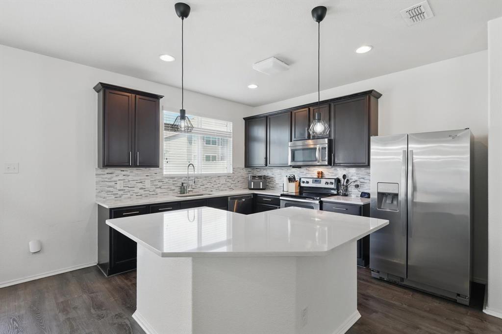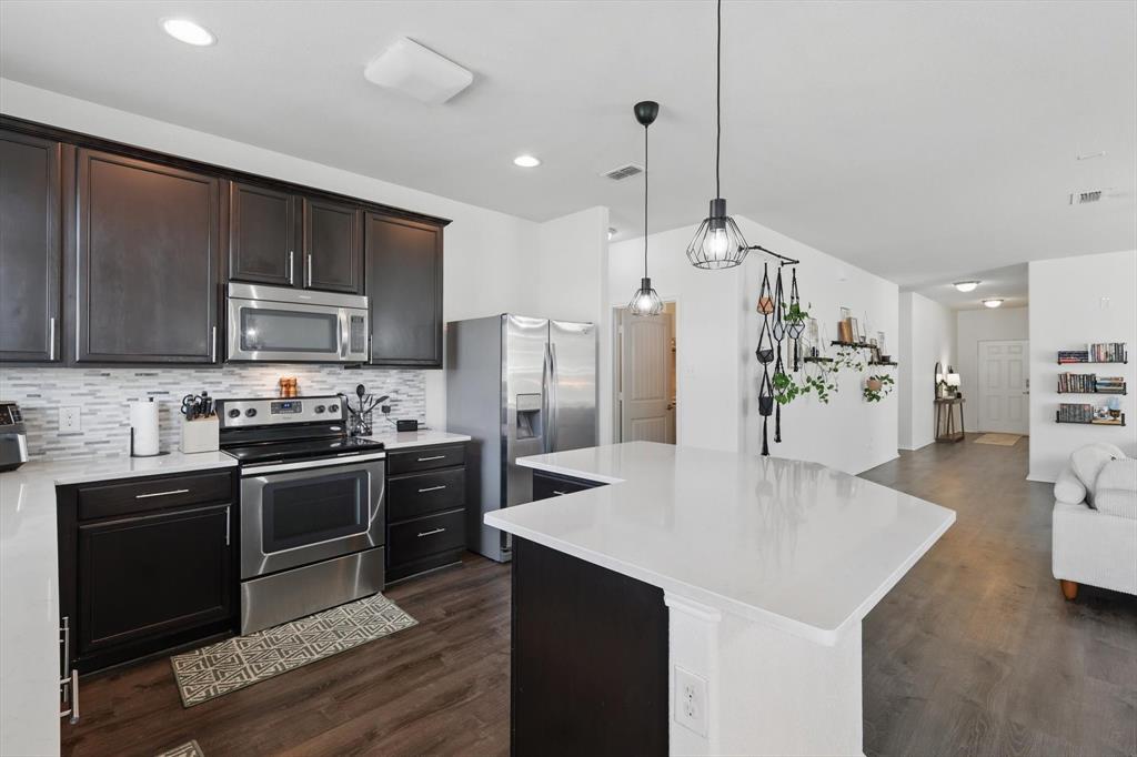 The kitchen has been recently updated with beautiful QUARTZ countertops and features a large island with a breakfast bar, perfect for casual dining, and is complete with STAINLESS-STEEL appliances. Wood floors were installed in 2021, and the roof was replaced in 2020, adding to the home’s value and peace of mind. Neutral flooring and paint throughout provide a clean, move-in ready feel.