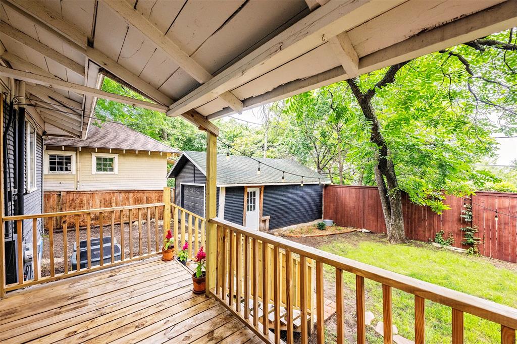 Step outside onto the covered deck off the kitchen, which overlooks a serene, private backyard shaded by mature trees. A detached 1-car garage adds both charm and functionality to this delightful home.