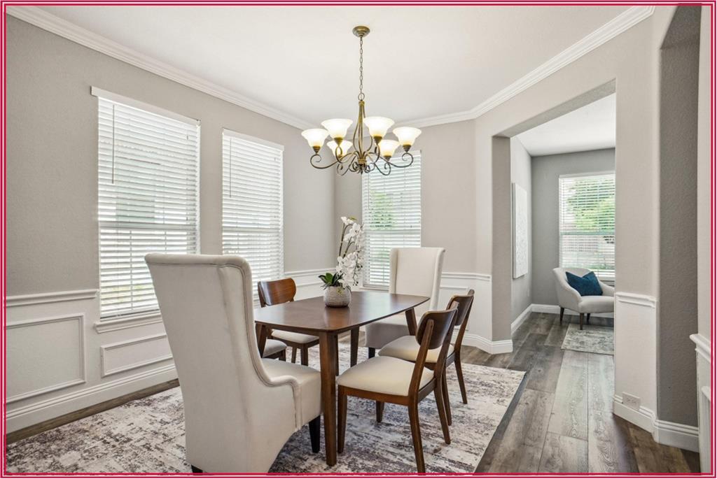 Welcome to this stunning 4-bedroom, 3.5-bath home in the highly desirable Heritage community! From the moment you step inside, you’re greeted by a large, open entry that flows seamlessly into a bright, airy layout. This home offers a front swing garage, two living areas, and a study downstairs, and an elegant formal dining room featuring ornamental molding and wainscoting—a perfect setting for entertaining. The heart of the home is the beautiful island kitchen, complete with white cabinets, stainless steel appliances, recessed lighting, and gas cooking. The kitchen opens to the spacious family room and breakfast area, both showcasing a beautiful wall of windows overlooking the backyard, flooding the space with natural light .The luxurious primary suite is located downstairs for privacy, large enough for a nice sitting area. The Ensuite bath offers separate vanities, perfect for his and her, a garden tub, and a large walk-in shower. Upstairs, you’ll find additional bedrooms, a spacious game room, with a wonderful large closet off the game room—ideal for extra storage or keeping holiday decorations neatly organized. The three upstairs bedrooms are spacious and perfect for the kids. Enjoy access to top-rated schools and the outstanding Heritage amenities, including pools, parks, ponds, playgrounds, and walking trails. This home perfectly blends elegance, comfort, and convenience—don’t miss your opportunity!
