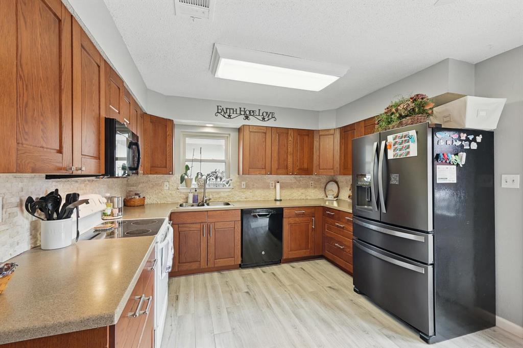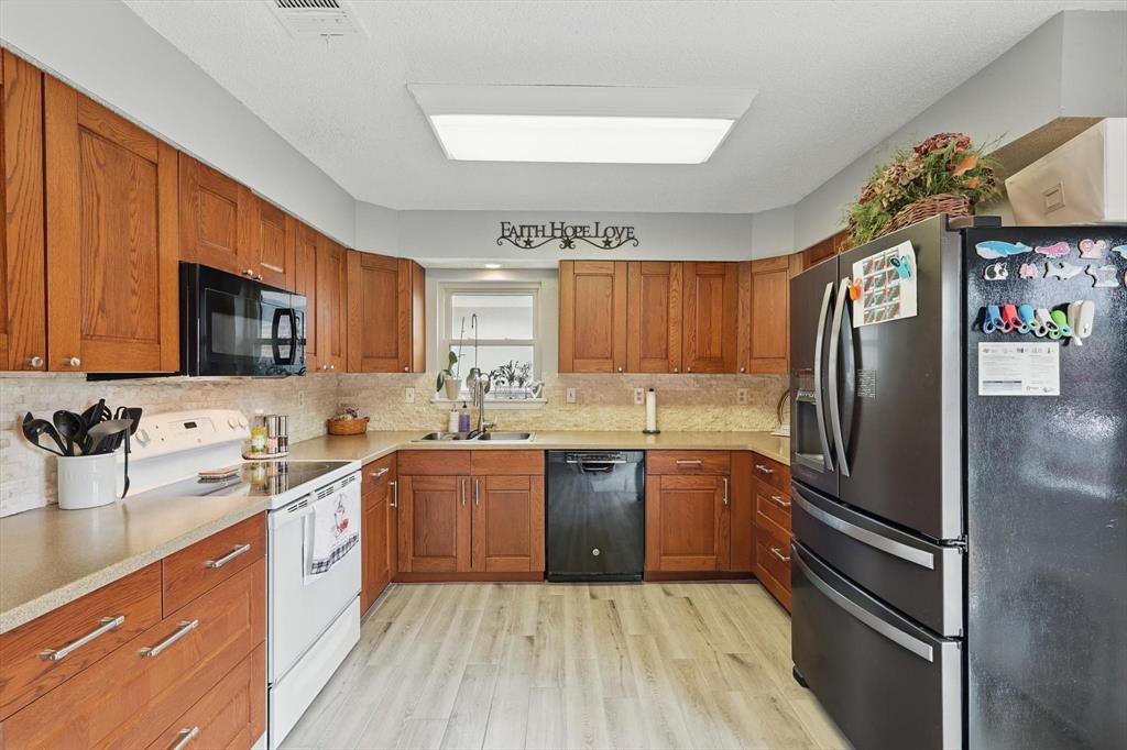 Inside, you’ll find a spacious, light filled layout featuring thoughtfully updated finishes throughout. The open concept living area offers modern flooring, neutral tones, and large windows that flood the space with natural light. The remodeled kitchen is a true highlight, showcasing sleek countertops, updated cabinetry and ample storage perfect for both daily living and entertaining.