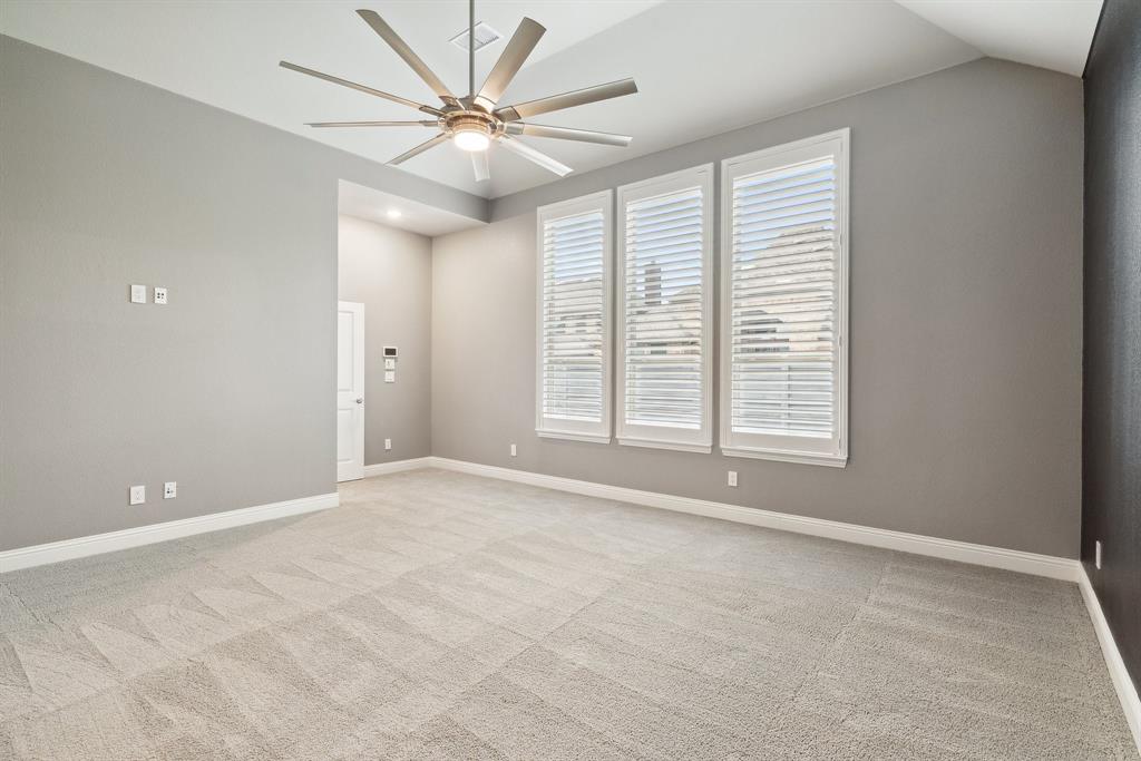 Welcome to Your Union Park Dream Home. Experience elevated living in this impeccably upgraded single-story Highland Home built in 2020, featuring 13 foot ceiling, numerous upgrades, 4 spacious bedrooms, 4 luxurious bathrooms, and a thoughtfully designed layout perfect for both everyday living and entertaining. Located in one of the area's most sought-after master-planned community, this home is the perfect blend of comfort, style, and convenience. Step inside to discover plantation shutters, offering just the right balance of natural light and privacy. The chef’s kitchen is a true centerpiece, boasting high-end Corian countertops, sleek cabinetry, stainless steel appliances, and a large island that seamlessly flows into the open-concept living and dining areas—ideal for hosting gatherings or enjoying quiet family nights. A dedicated office provides a private and functional workspace, while a private media room delivers the ultimate retreat for movie nights or game-day excitement. The primary suite is a sanctuary, complete with a spa-inspired en-suite bathroom featuring dual vanities, a soaking tub, and a generous custom walk-in closet. Each of the additional bedrooms offers flexibility for family, guests, or hobbies. Outside, enjoy community meticulously maintained front landscaping, a welcoming front entry, and a 3-car garage offering ample storage. Situated in the heart of Union Park, you’ll enjoy access to walking trails, community pools, green spaces, planned neighborhood events, fitness center and a food truck park, along with on-site elementary school—all within minutes of shopping, dining, and major highways. This is more than a home—it’s a lifestyle upgrade. Don’t miss your chance to make it yours!