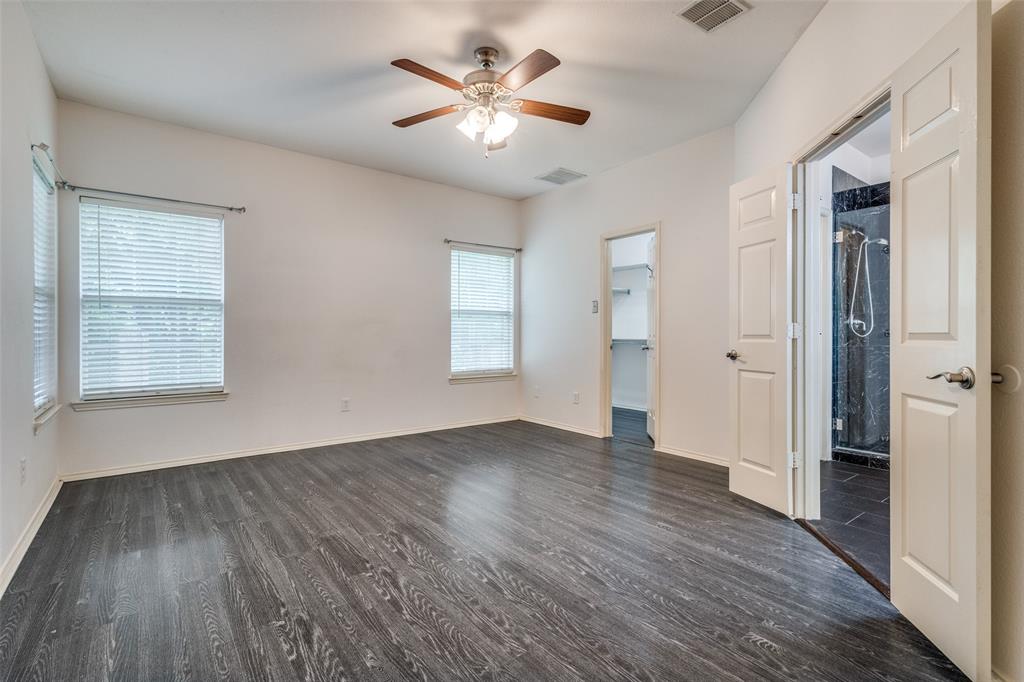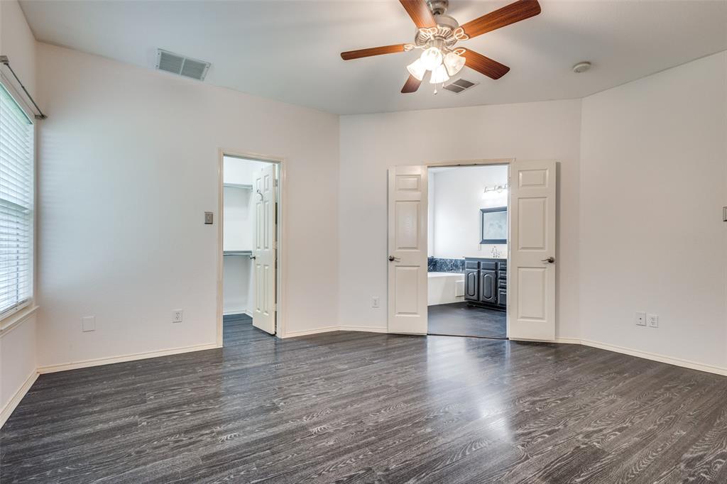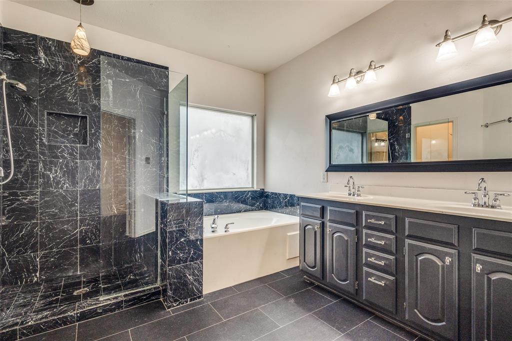 Nestled in the prestigious Timberview Estates and just a short walk from the highly sought-after Marcus High School, this beautifully designed one-story home blends comfort, elegance, and tranquility in a family-friendly neighborhood. Set against the serene backdrop of Prairie Creek and bordered by a lush greenbelt to the north, this sanctuary offers the rare luxury of privacy and natural beauty right outside your door. Inside, you'll find four spacious bedrooms with generous walk-in closets-including a flexible room ideal for a home office, guest suite, or creative space. The primary suite features a spa-inspired bathroom with a separate soaking tub and shower, plus two expansive walk-in closets for ultimate convenience.