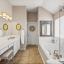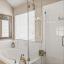The primary bathroom is a sanctuary of luxury, recently updated and includes separate vanities and a double sink, combining functionality with sophistication. A home office provides a tranquil space for work or study, supported by high-speed internet.