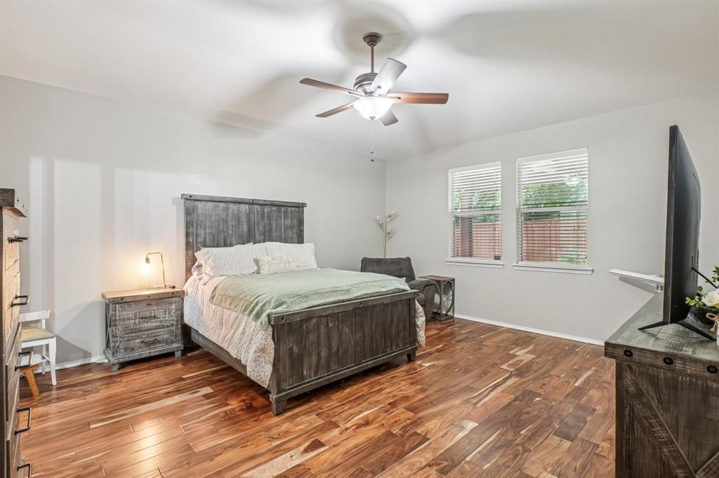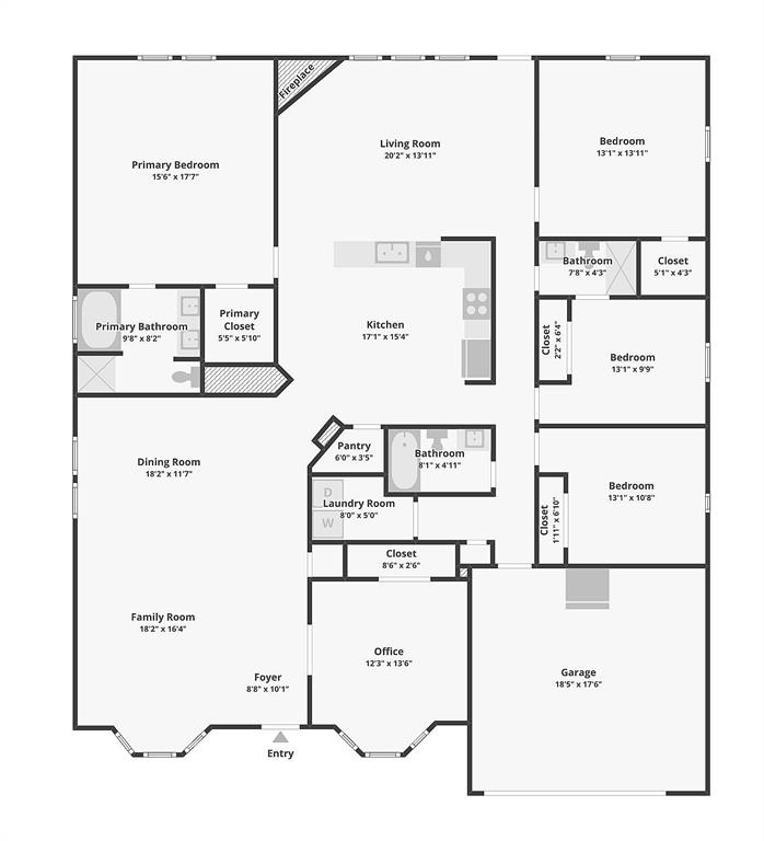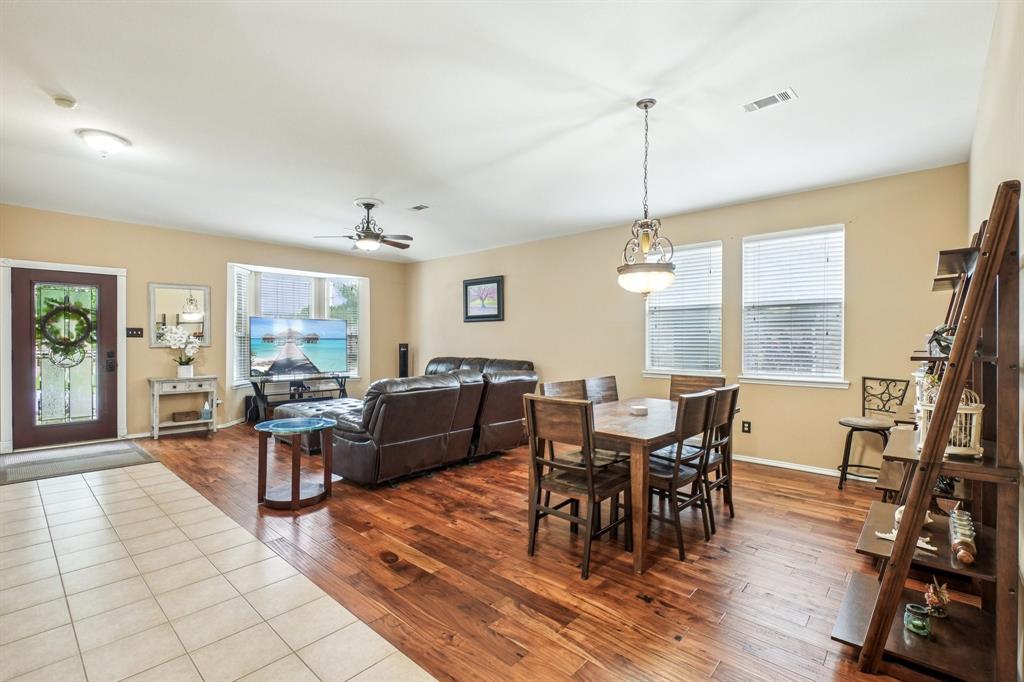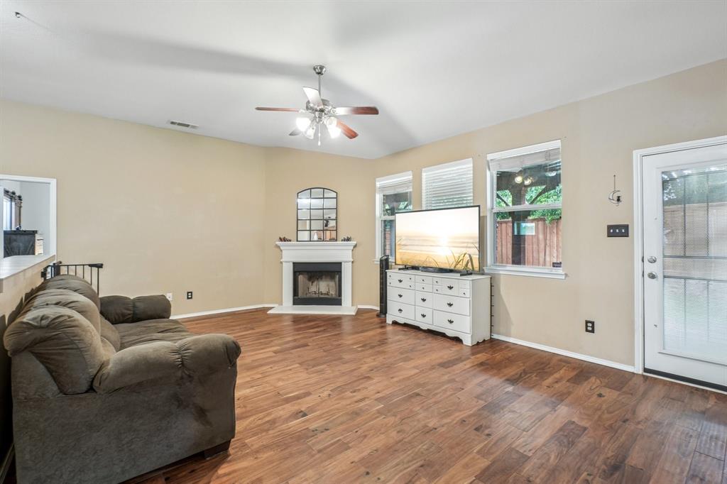 Discover this spacious Hard-to-Find SINGLE STORY gem offering 4 bedrooms and 3 full baths! The heart of the home is the oversized kitchen, perfectly positioned between the living and dining areas and a cozy family room with a warm corner fireplace. Featuring modern stainless steel appliances—including a double-oven range—ample cabinetry, and space for a breakfast table or large island, this kitchen is truly made for gatherings of any size. Stylish hardwood and tile flooring flow throughout the main living areas, combining warmth and durability with low-maintenance appeal. The expansive primary suite is a peaceful retreat with a generous ensuite bath and a designer touch—rustic sliding barn doors. A front-facing office with a sunny bay window and closet offers flexibility as a guest room. Step outside to a large yard and enjoy the comfort of an 18-foot covered patio with a custom Starburst gable. An 8-foot board-on-board fence ensures maximum privacy, making it perfect for outdoor relaxation or entertaining. Located in Bozman Farm Estates, this home comes with access to walking trails, open green space surrounding a pond, and a sparkling community pool. Enjoy proximity to excellent schools, shopping, dining, and highways. This is a must-see home that checks all the boxes—schedule your private showing today!