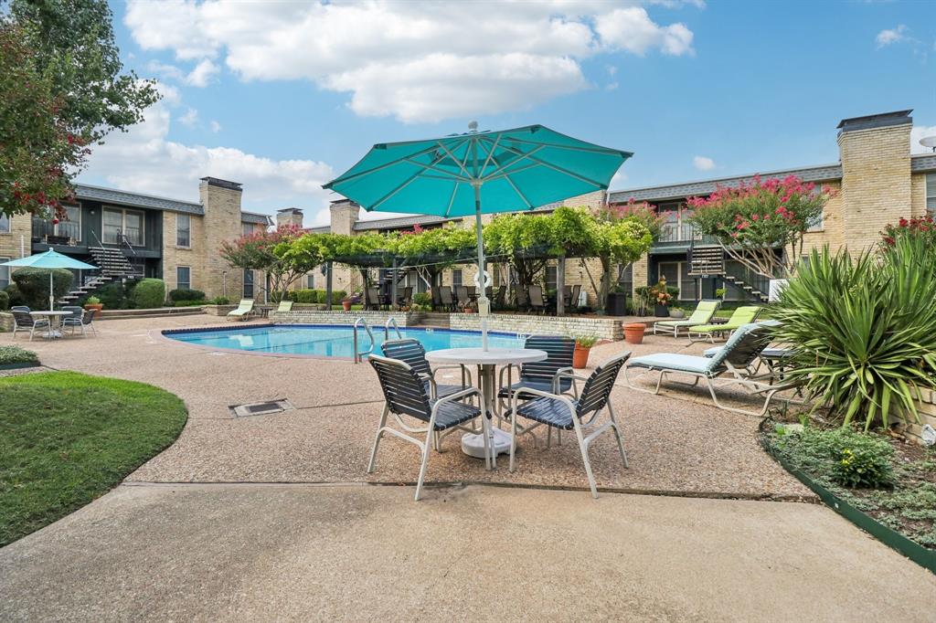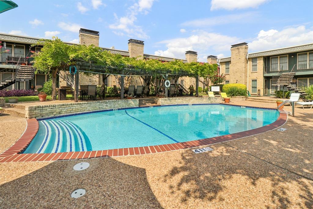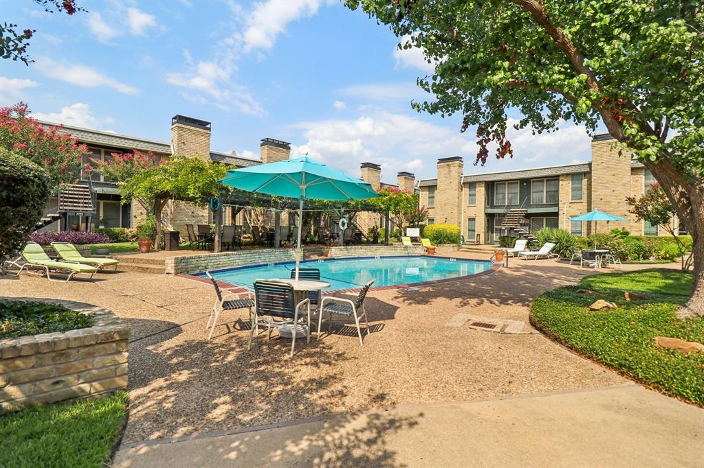 All utilities included in low HOA dues – exceptional value! Fully renovated in April 2022, including a brand-new kitchen, both bathrooms, electrical breaker panel, and plumbing inside the unit. This stylish 2-bedroom, 2-bath condo blends comfort and modern design. The upgraded kitchen and bathrooms feature sleek cabinetry and high-end finishes, while ceramic plank tile flooring (no carpet) and quartz countertops add a touch of elegance throughout. A cozy brick fireplace enhances the inviting living space. Enjoy a private patio, a beautifully maintained community pool, and a prime Dallas location just minutes from NorthPark Center, SMU, the Medical District, and premier shopping and dining.